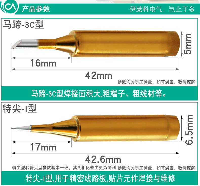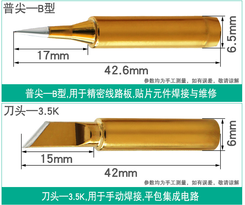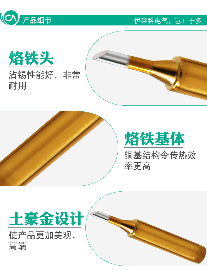 伊莱科焊台烙铁头(金色) 90M-T-3.5K(刀型配936焊台)