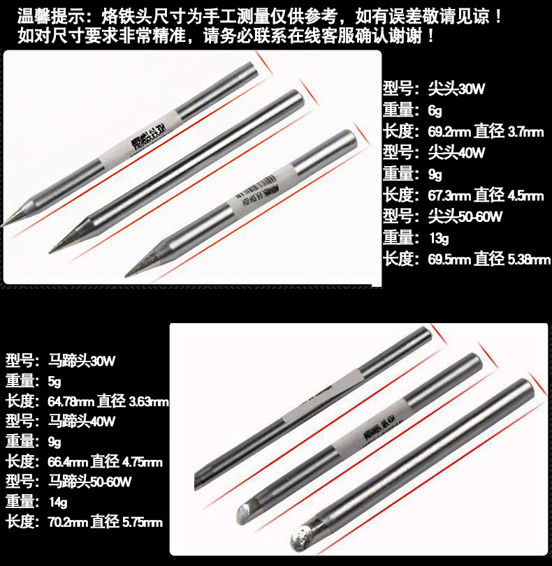 伊莱科外热式烙铁头(防干烧型) 40W 60W φ5.7mm