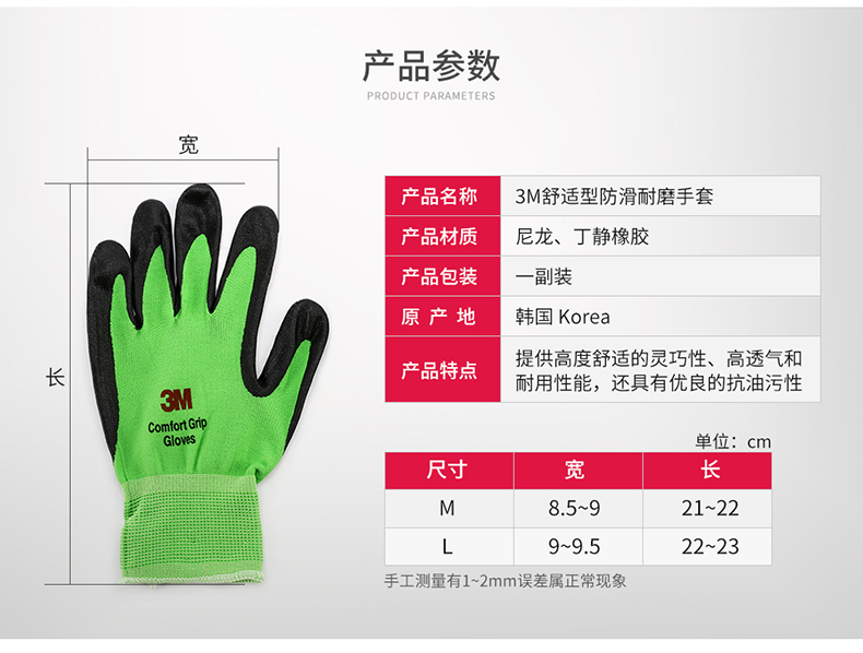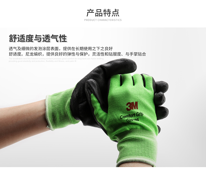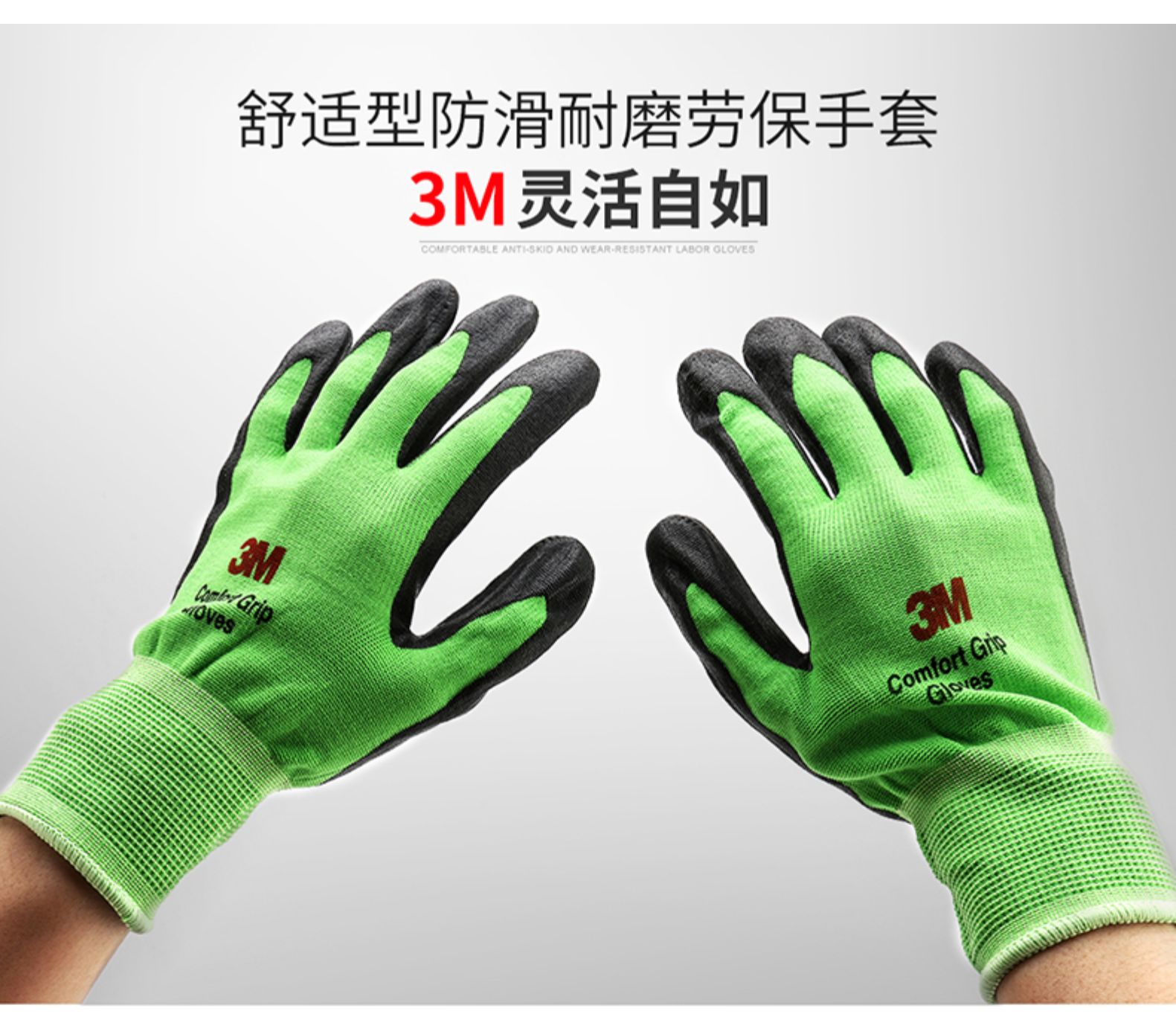 • 3M舒适型防滑耐磨手套工业工作劳动丁腈涂掌浸胶劳保手套透气