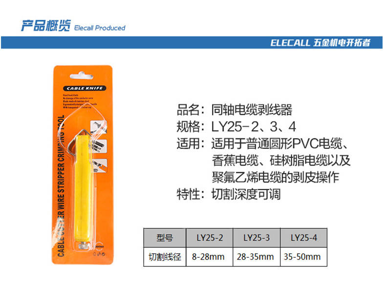 伊莱科同轴电缆剥线钳电线绝缘层剥离器剥皮钳LY25割线圆形PVC线