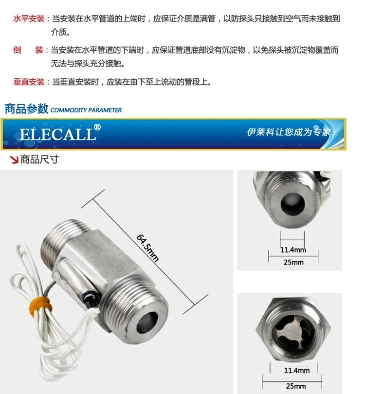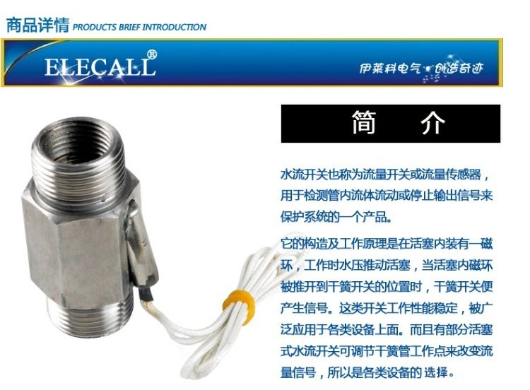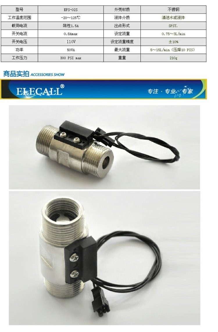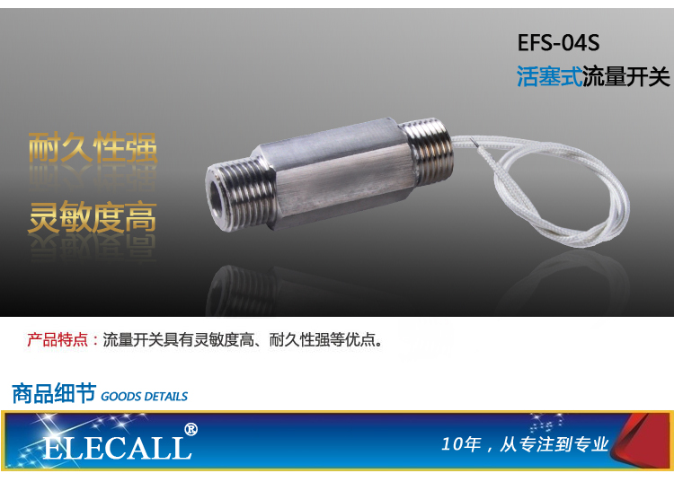 活塞式水流开关 不锈钢流量开关 EFS-04S 流量控制开关 4分外螺