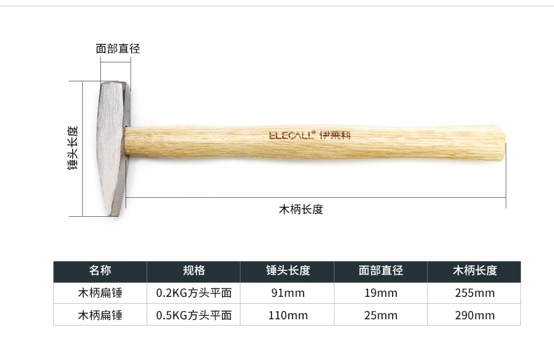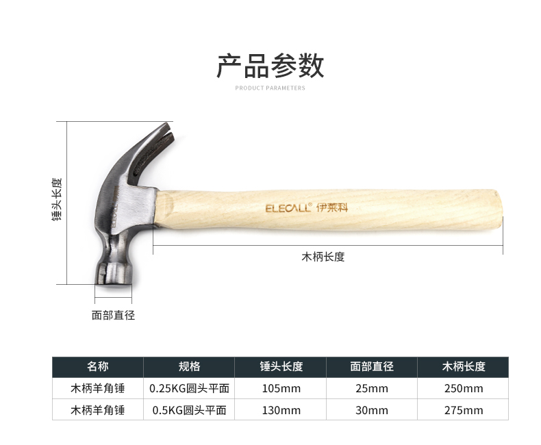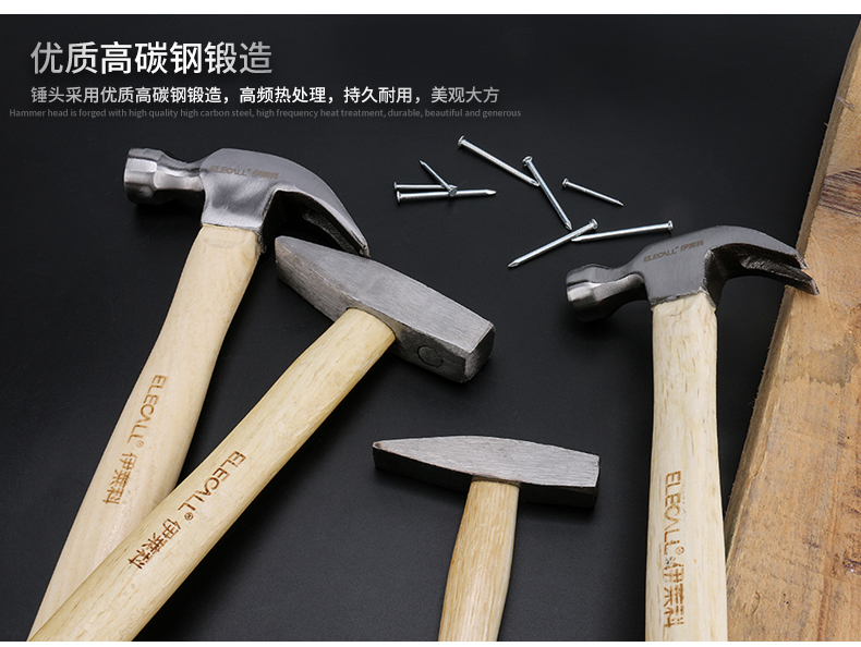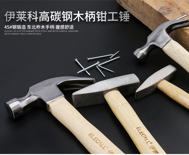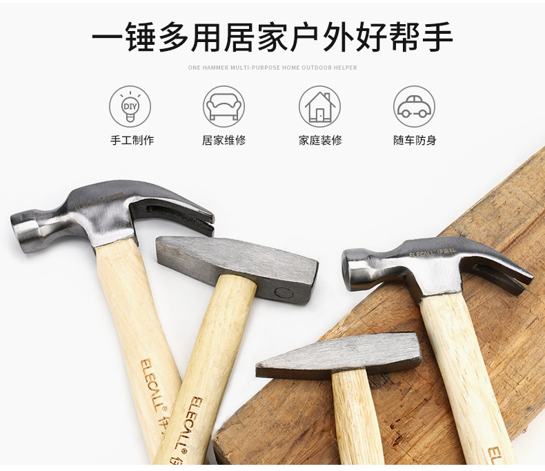 • 伊莱科铁羊角锤子特钢榔头多功能万用实用五金工具集合钉锤头木工