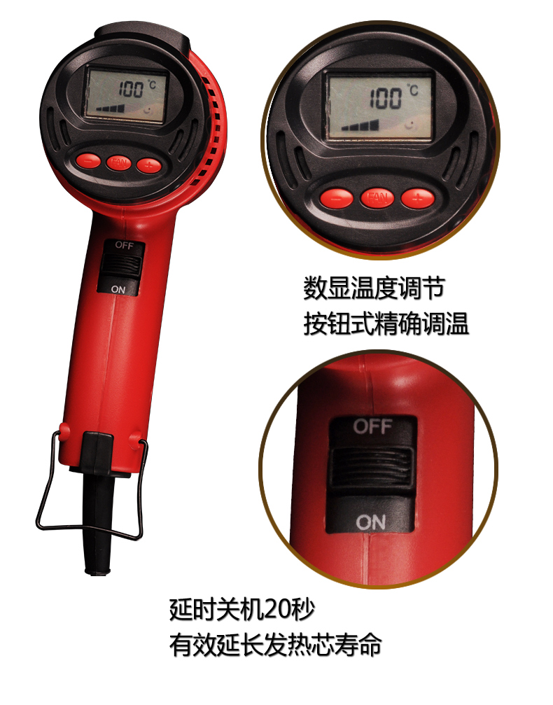 • 调温热风枪汽车贴膜数显烤枪烘枪热吹风机薄膜热缩焊枪热风机