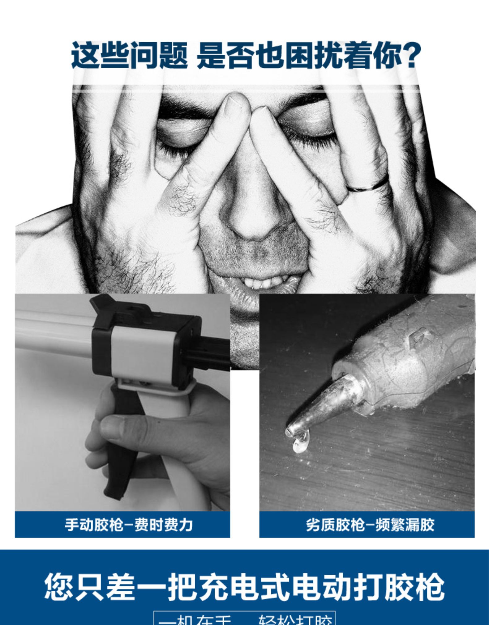 • 东成充电式打胶枪DCPJ12电动硅胶枪玻璃胶枪结构胶腊肠软胶压胶枪