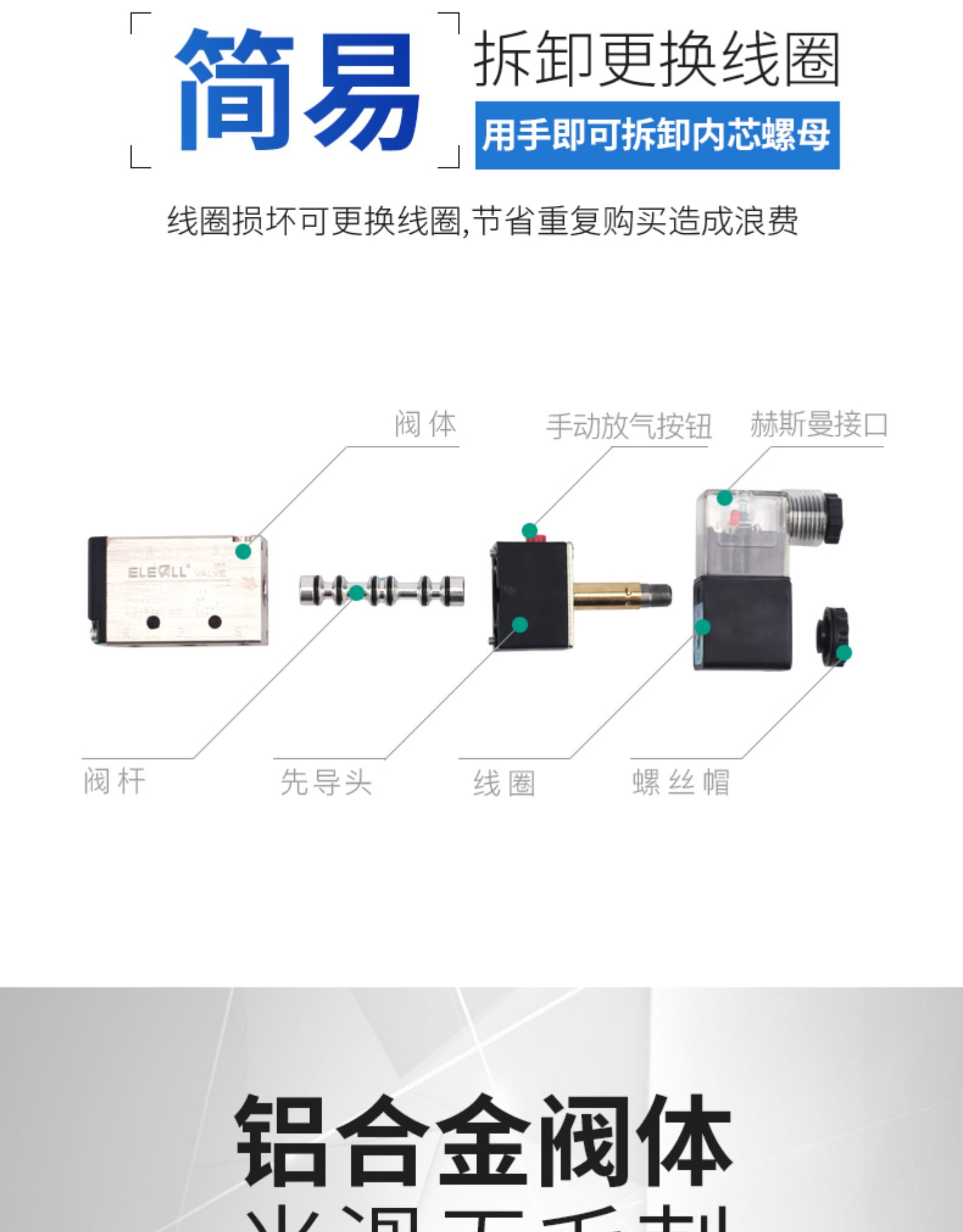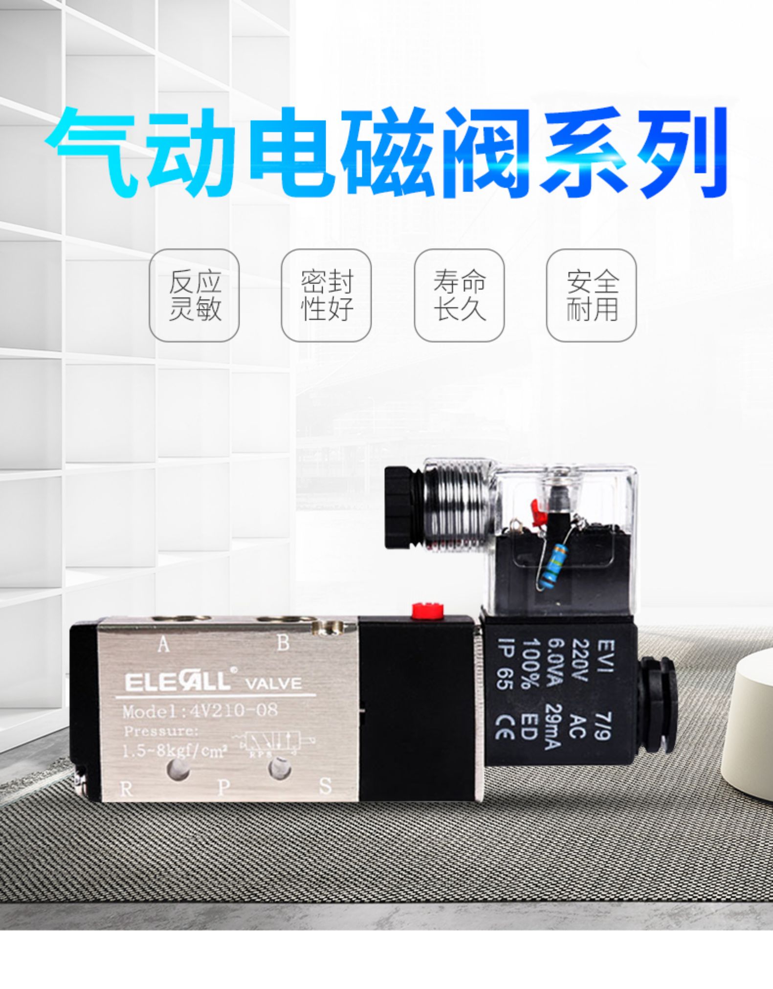 电磁阀4v210-08二位五通换向阀24v线圈气阀220气动电磁控制阀