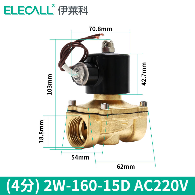 • 伊莱科常开黄铜电磁阀水阀油阀气阀AC220V4分6分1寸1.2寸1.5寸2寸