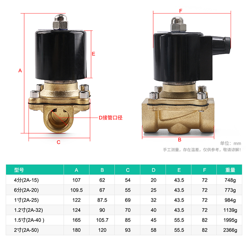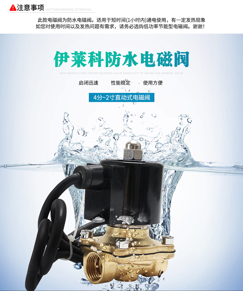 伊莱科防水全铜电磁阀水阀油阀气阀铜线圈常闭4分6分1寸1.2寸2寸