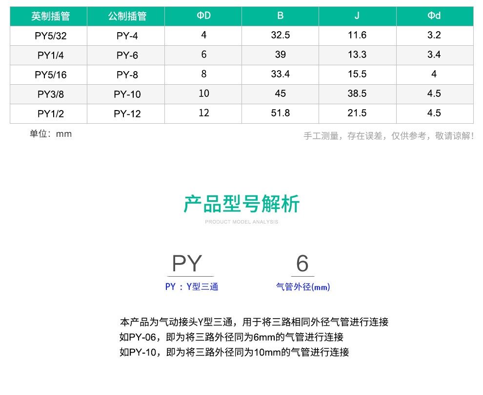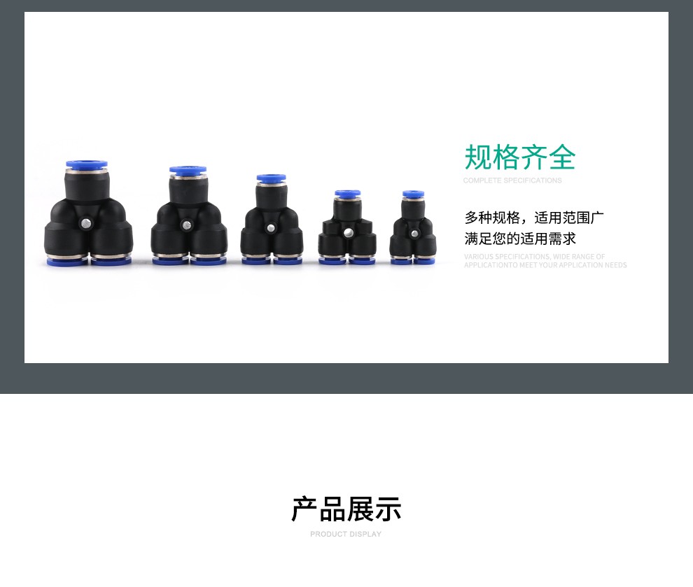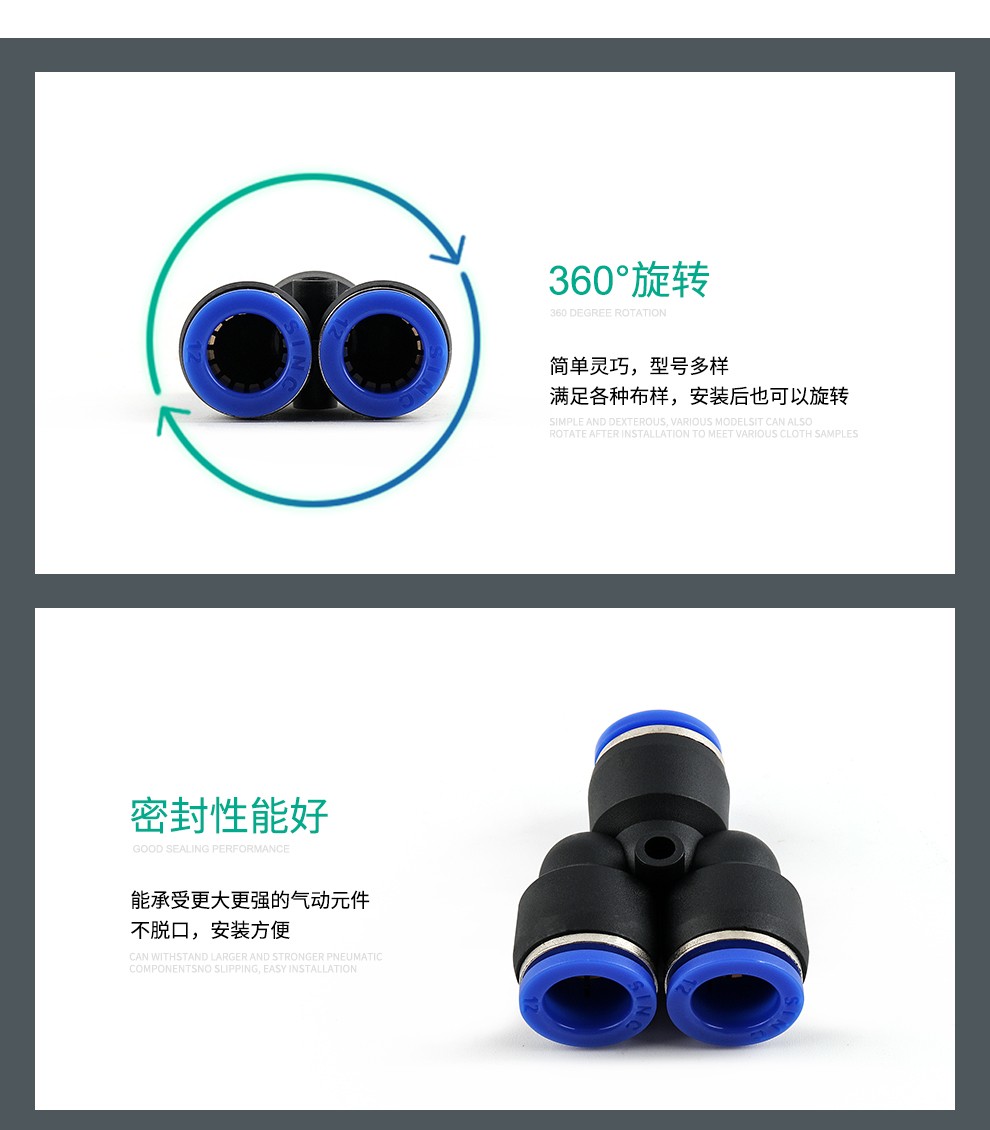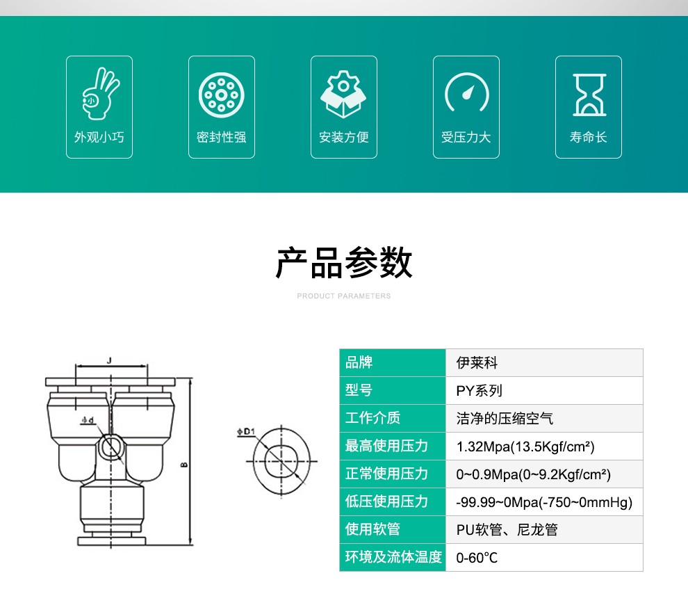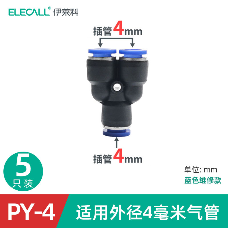 伊莱科气动快速接头气管接头三通Y型配件气缸PY三通快接高压接头