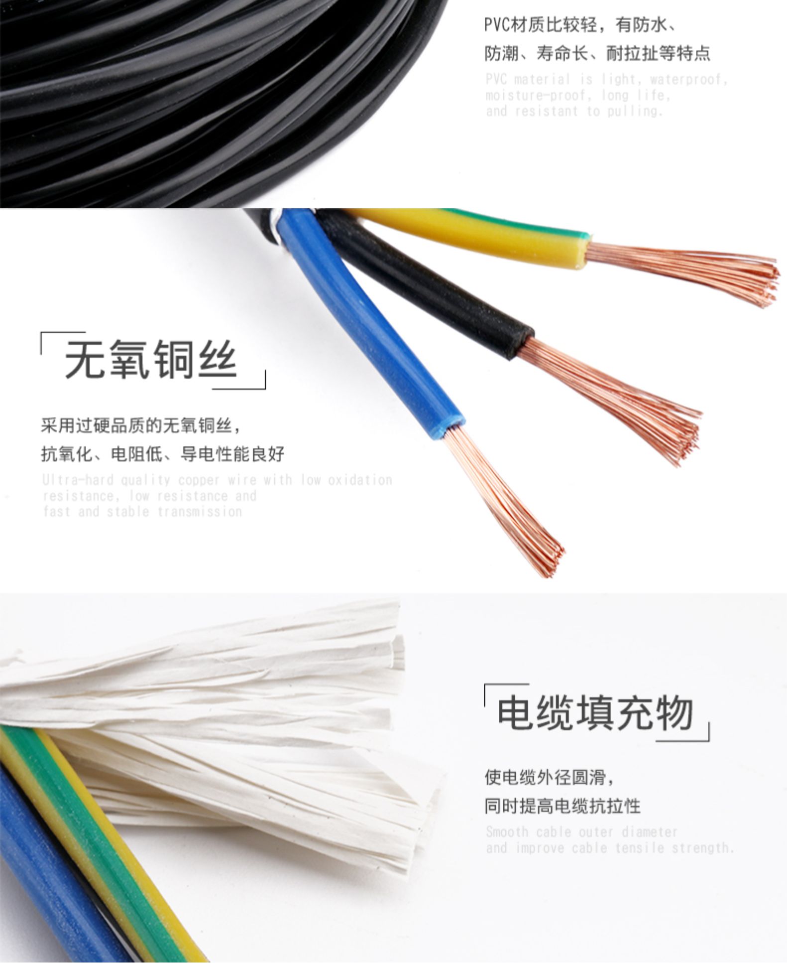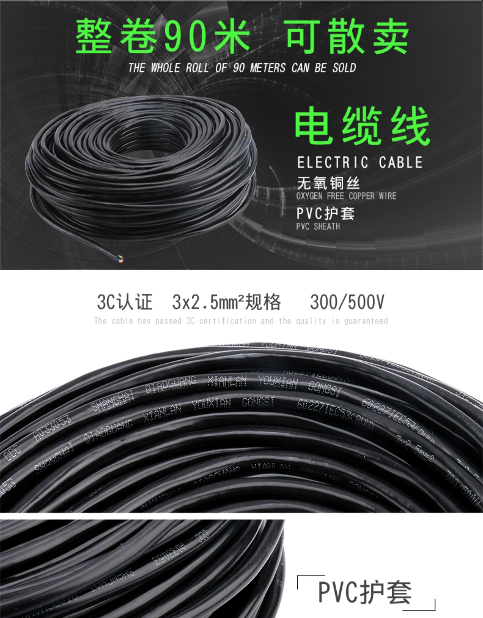 • 国标电焊机RVV电缆线电力电工防水绝缘铜芯高压3芯2.5平方家用