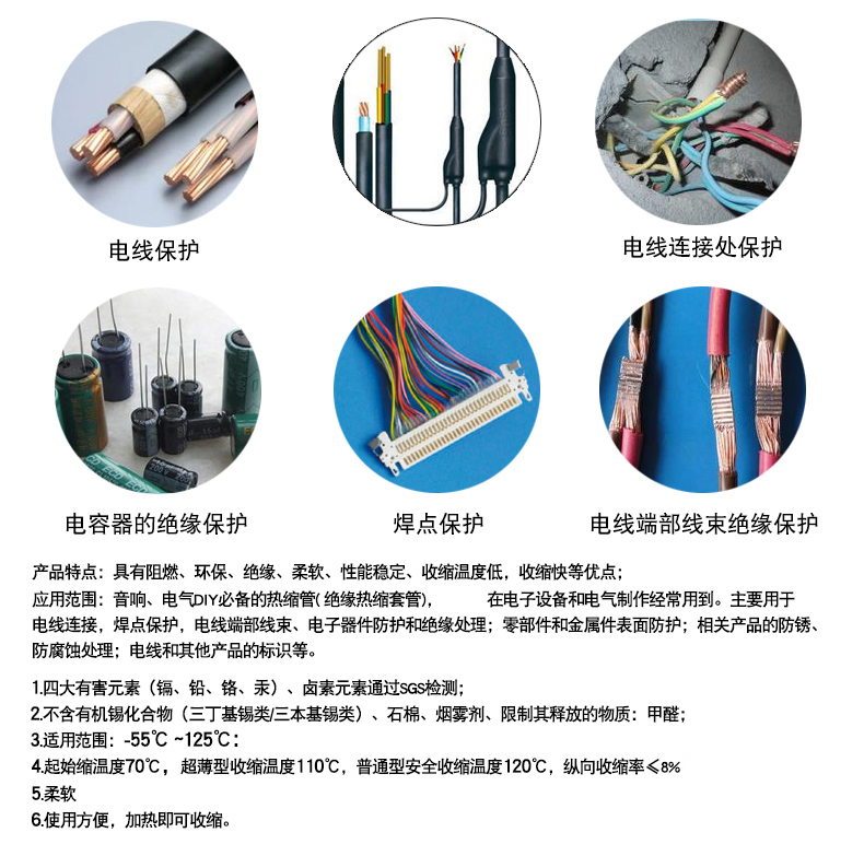 • 热缩管黑白色绝缘套管阻燃电工电线电缆保护热收缩管5米多色彩色