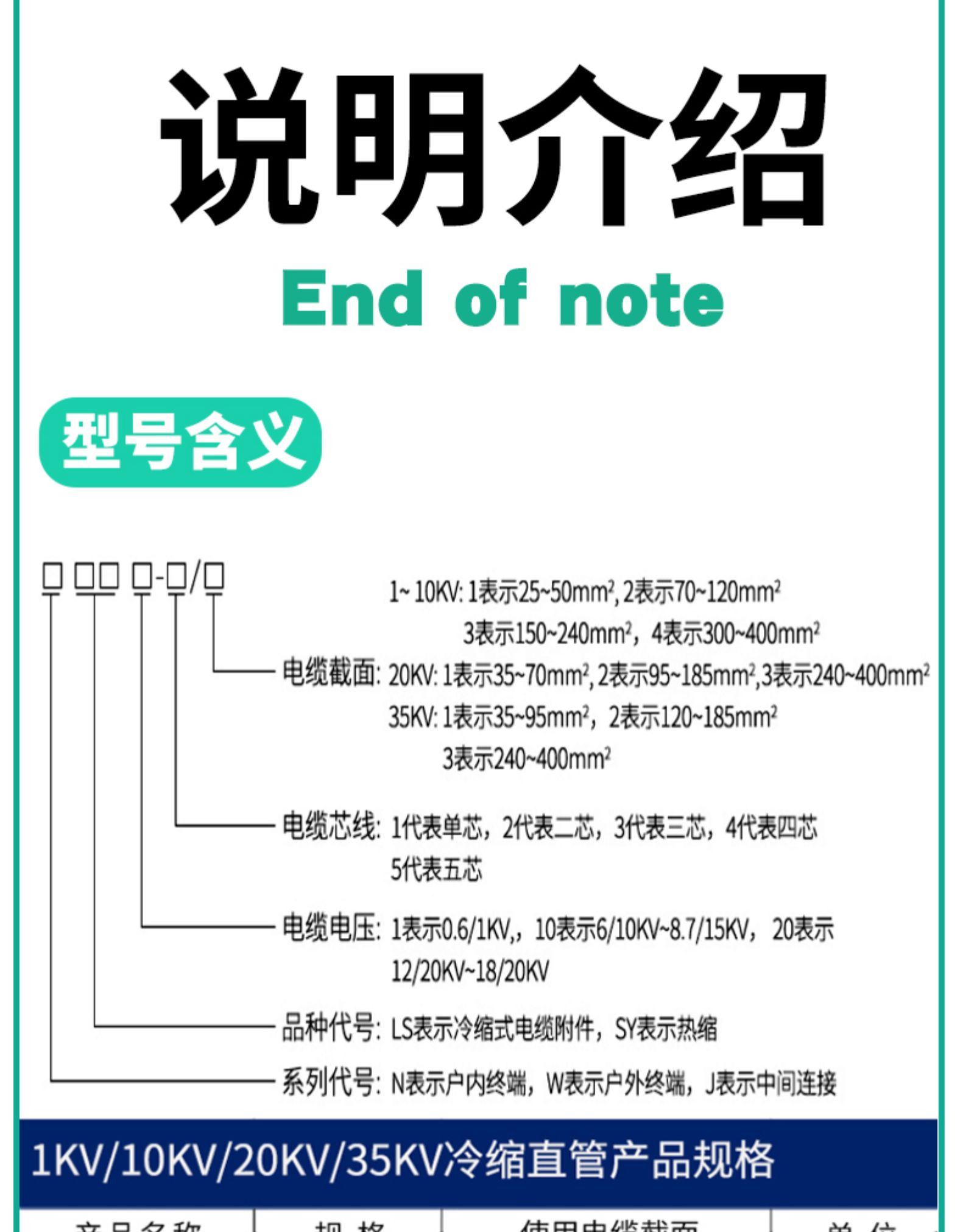 冷缩电缆终端头10KV35KV高压户内三芯绝缘户外套管附件电力电缆头