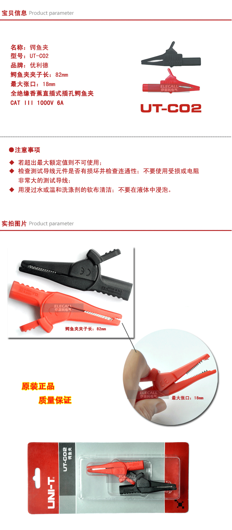 优利德 大号鳄鱼夹专用测试夹电瓶夹电流夹实用型 UT-CO2CO5