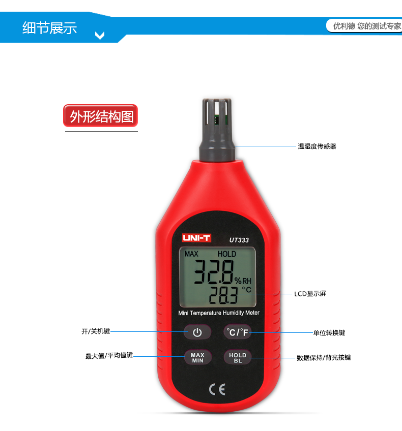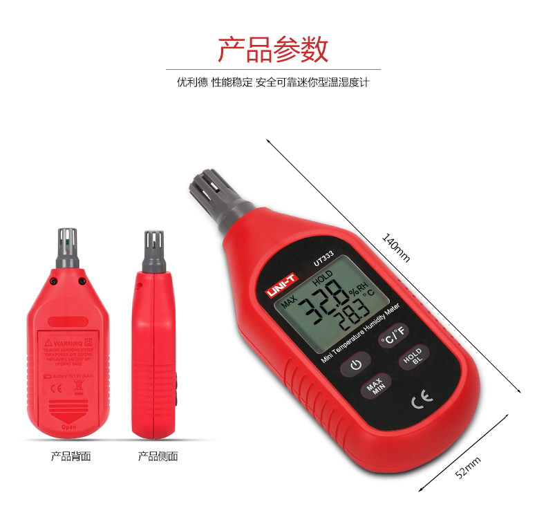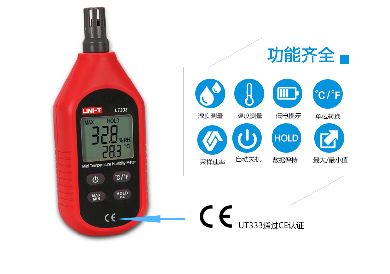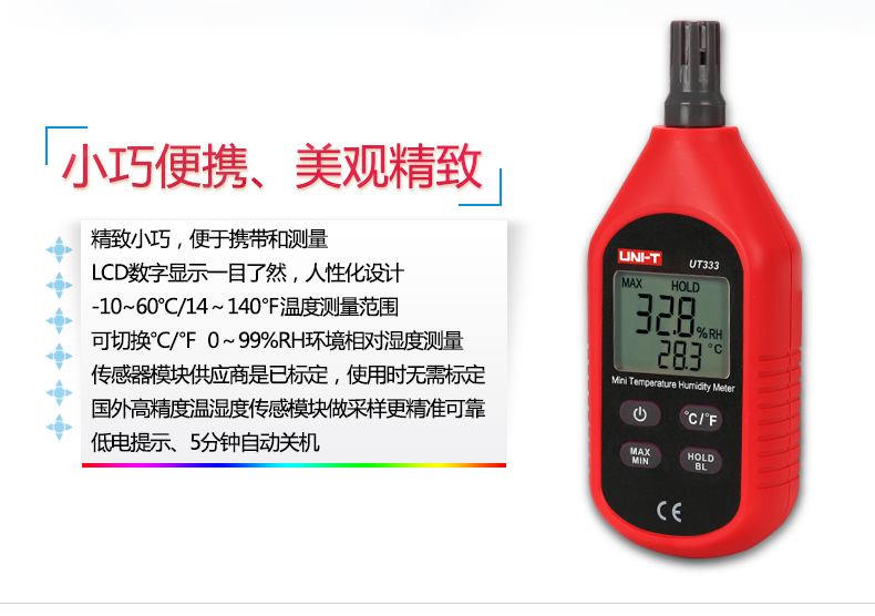 • 优利德便携数字温湿度计UT331高精度工业级温度湿度计带软件USB口