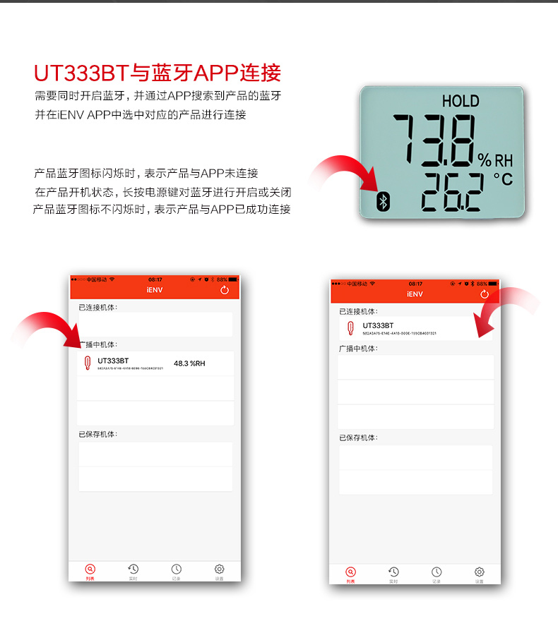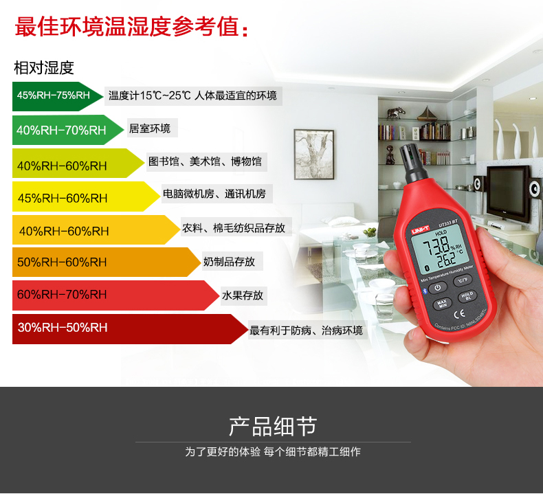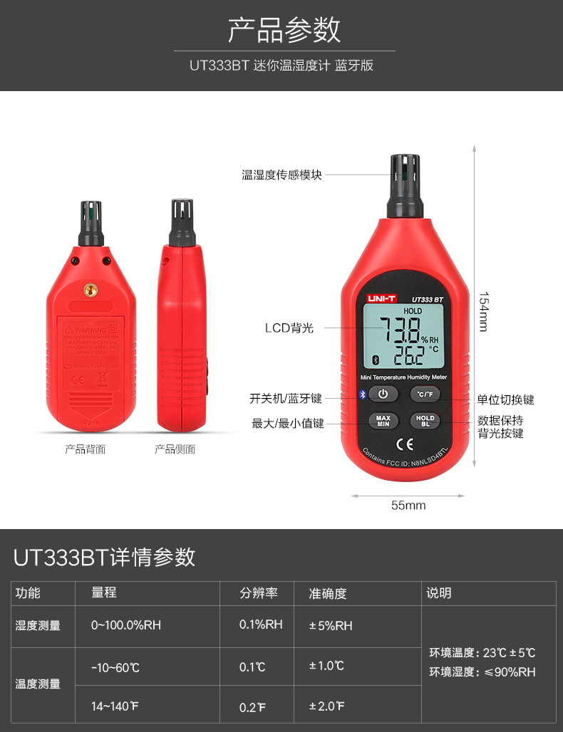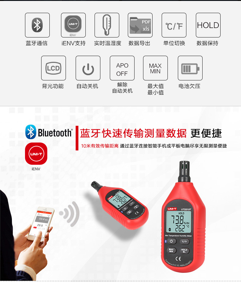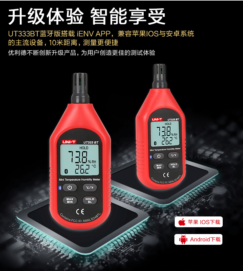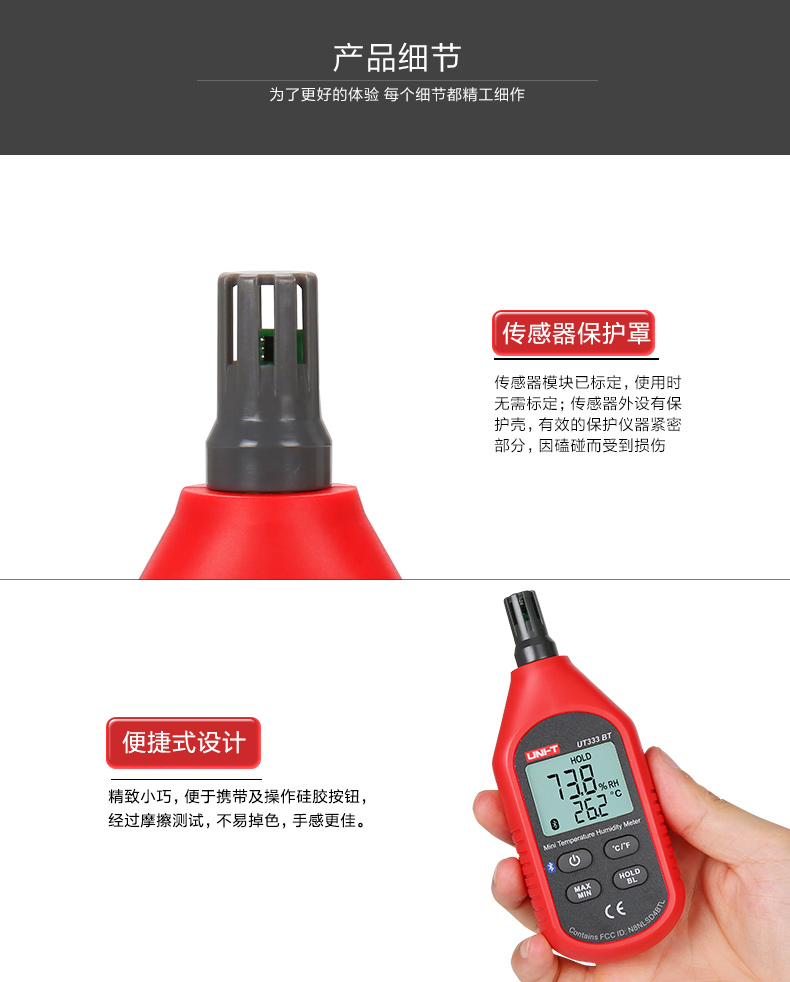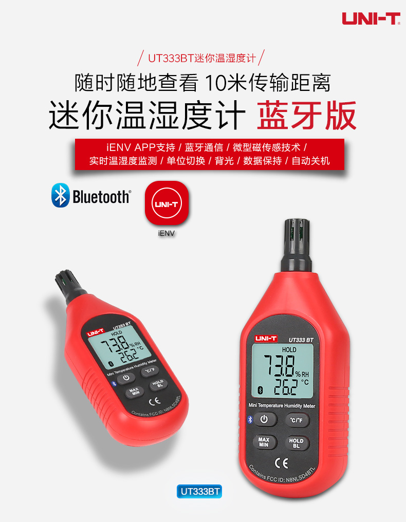 • 优利德温度计便携家用UT333BT室内高精度温湿度计数温度计湿度计