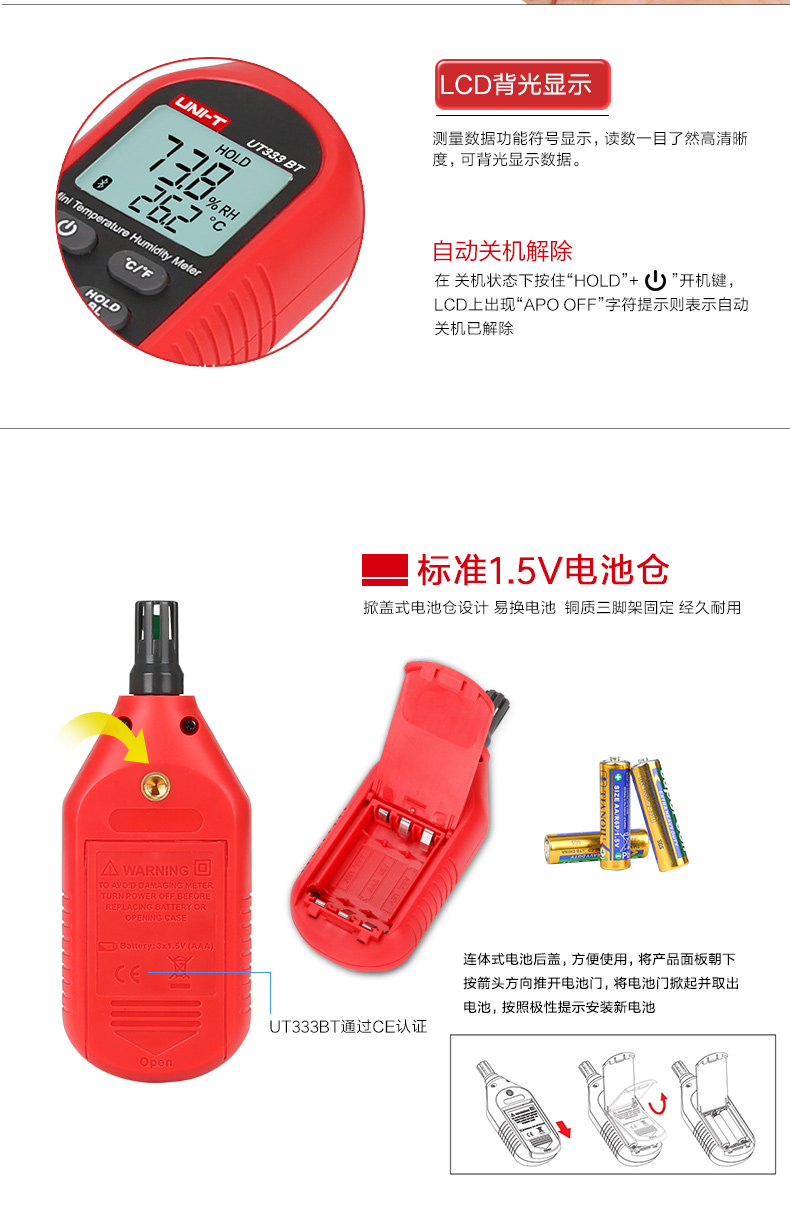 优利德温度计便携家用UT333BT室内高精度温湿度计数温度计湿度计