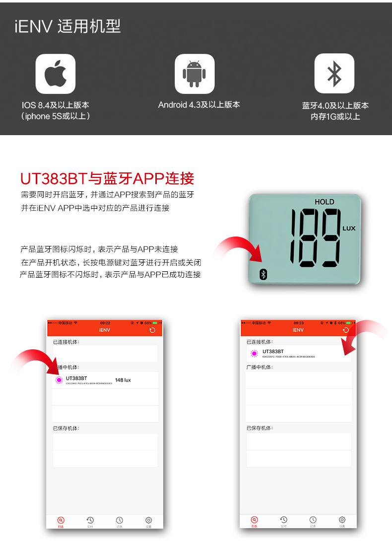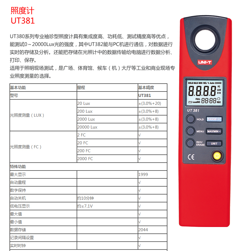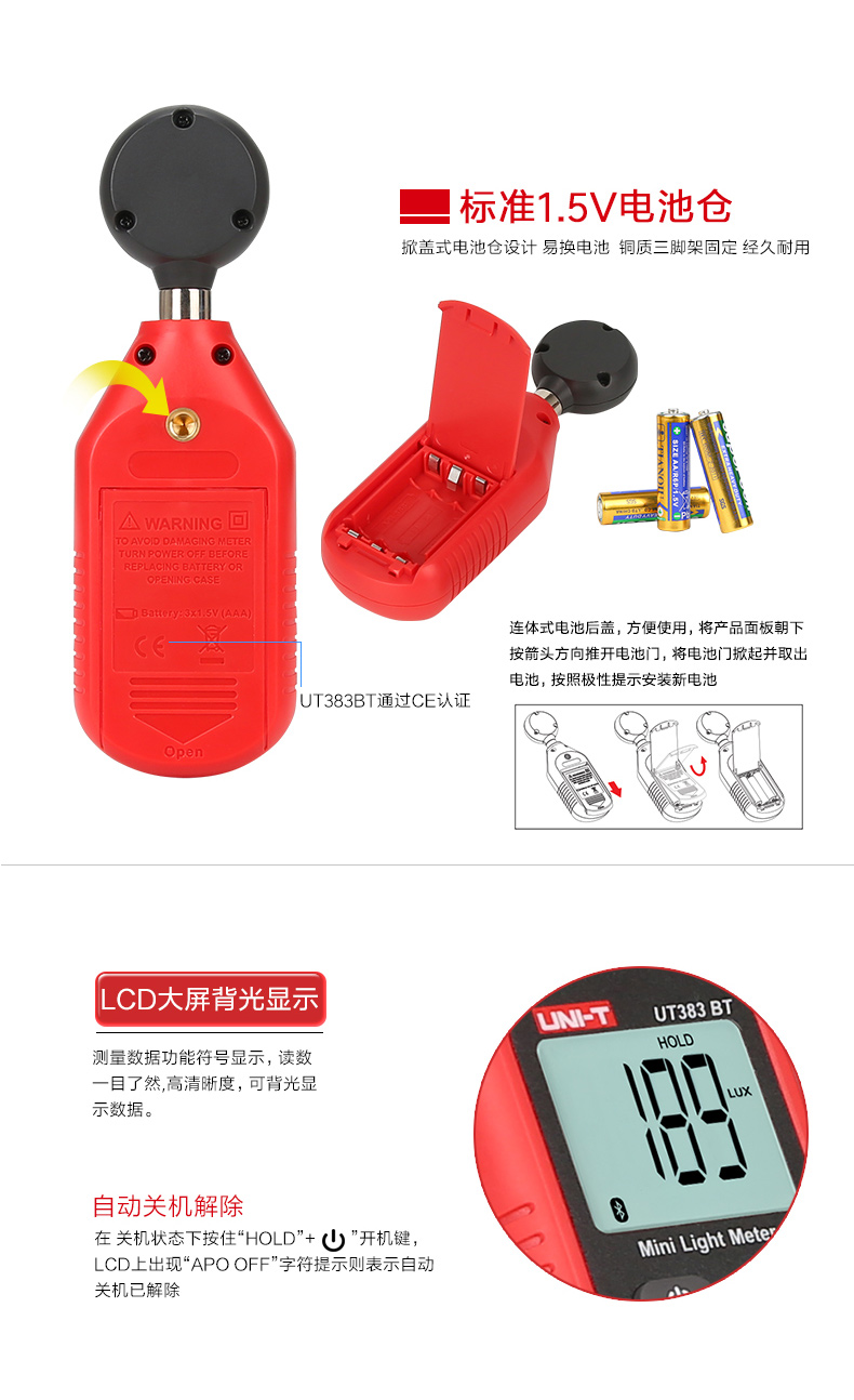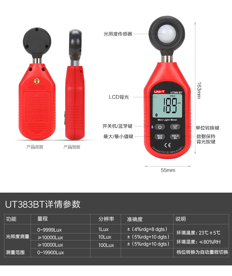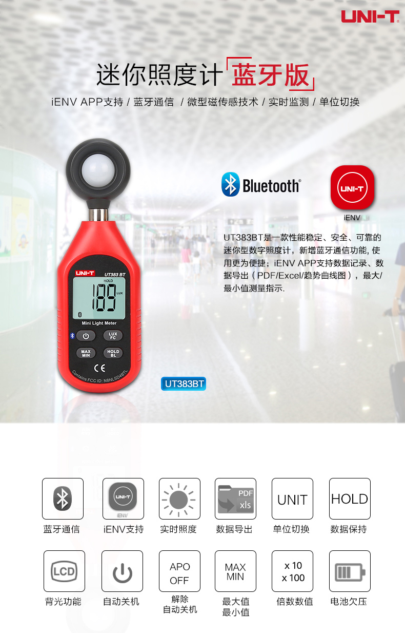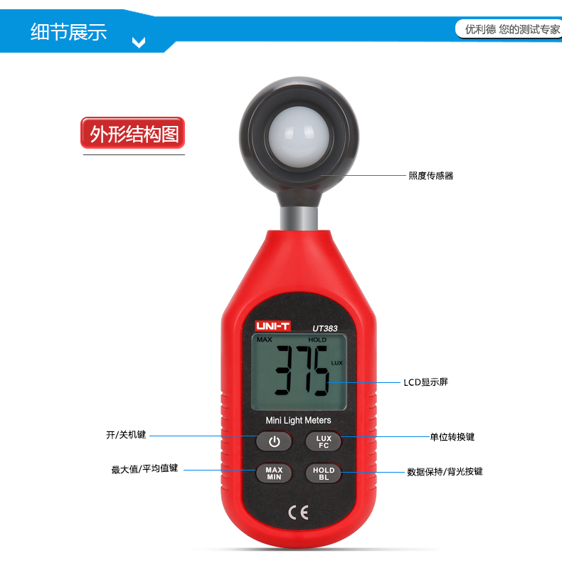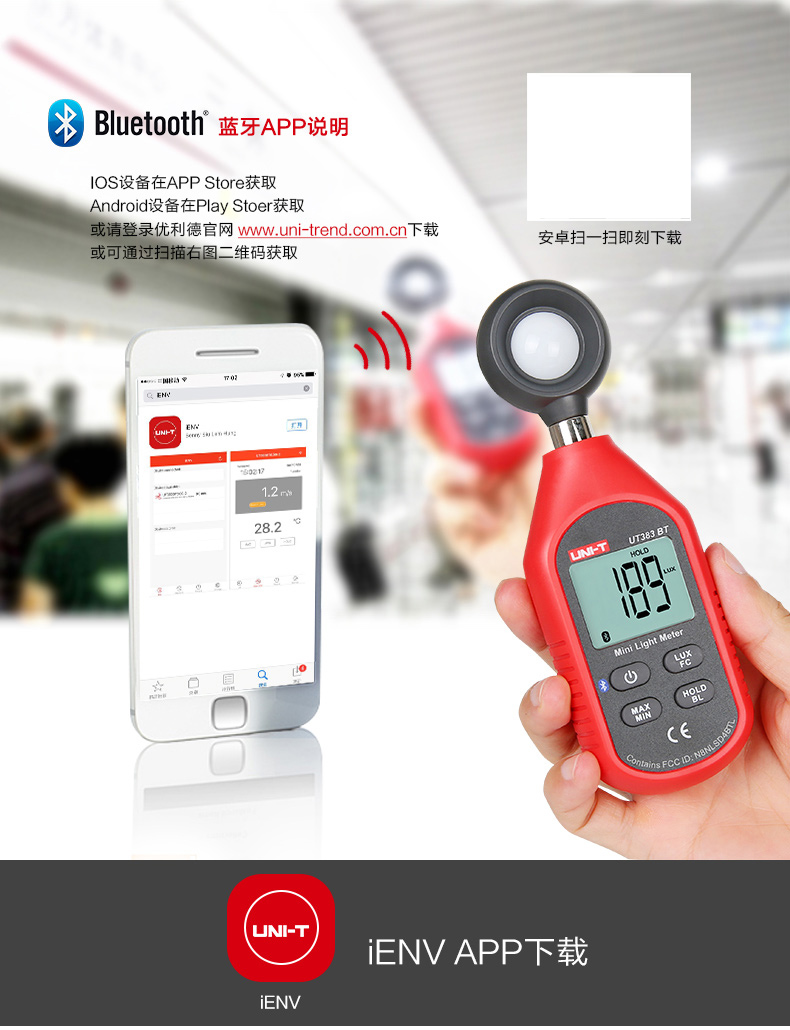 • 优利德UT383BT数字式照度计亮度测光仪高精度光照度计测光亮度仪