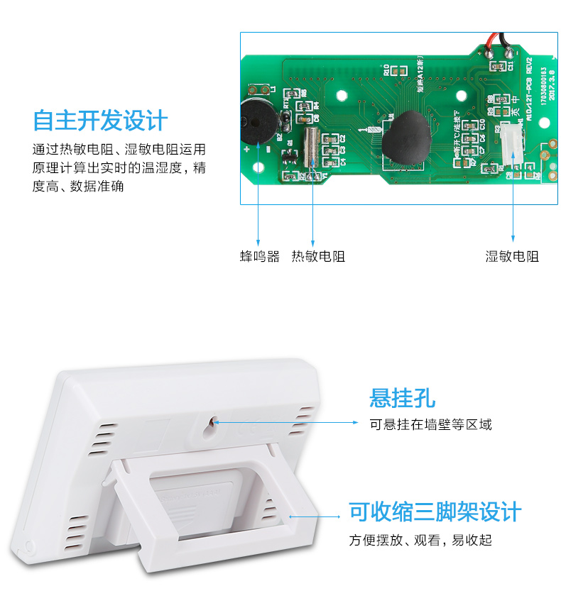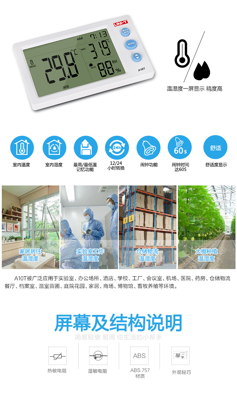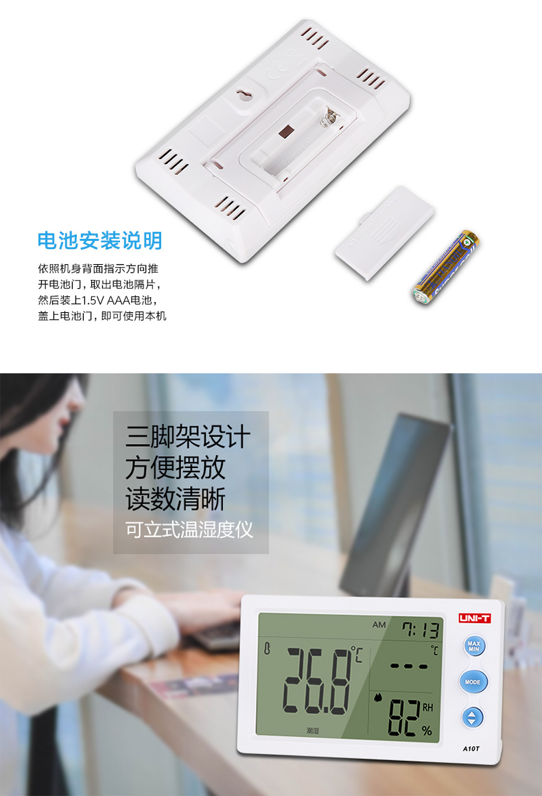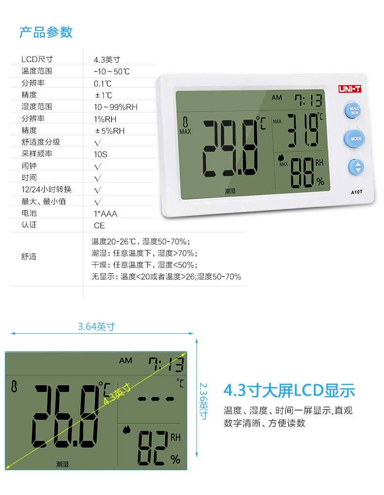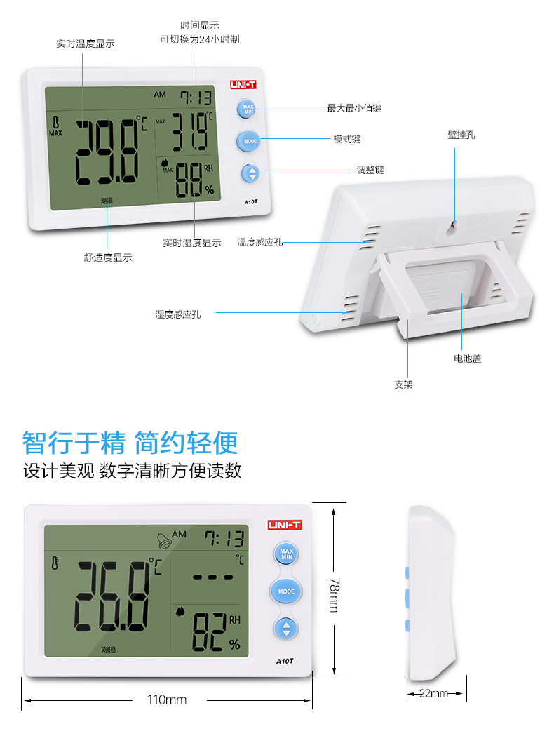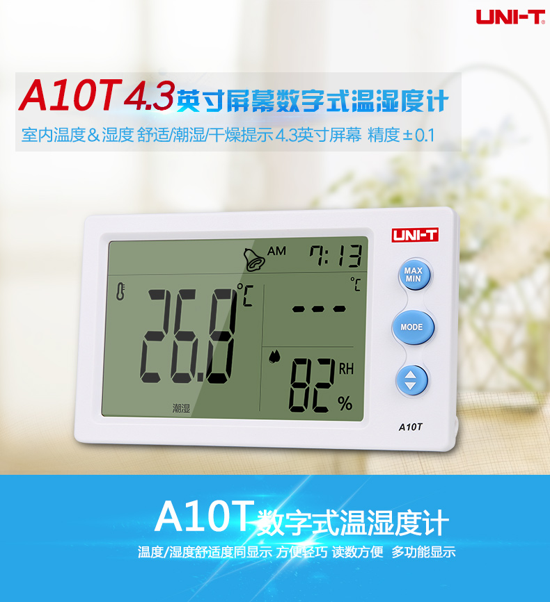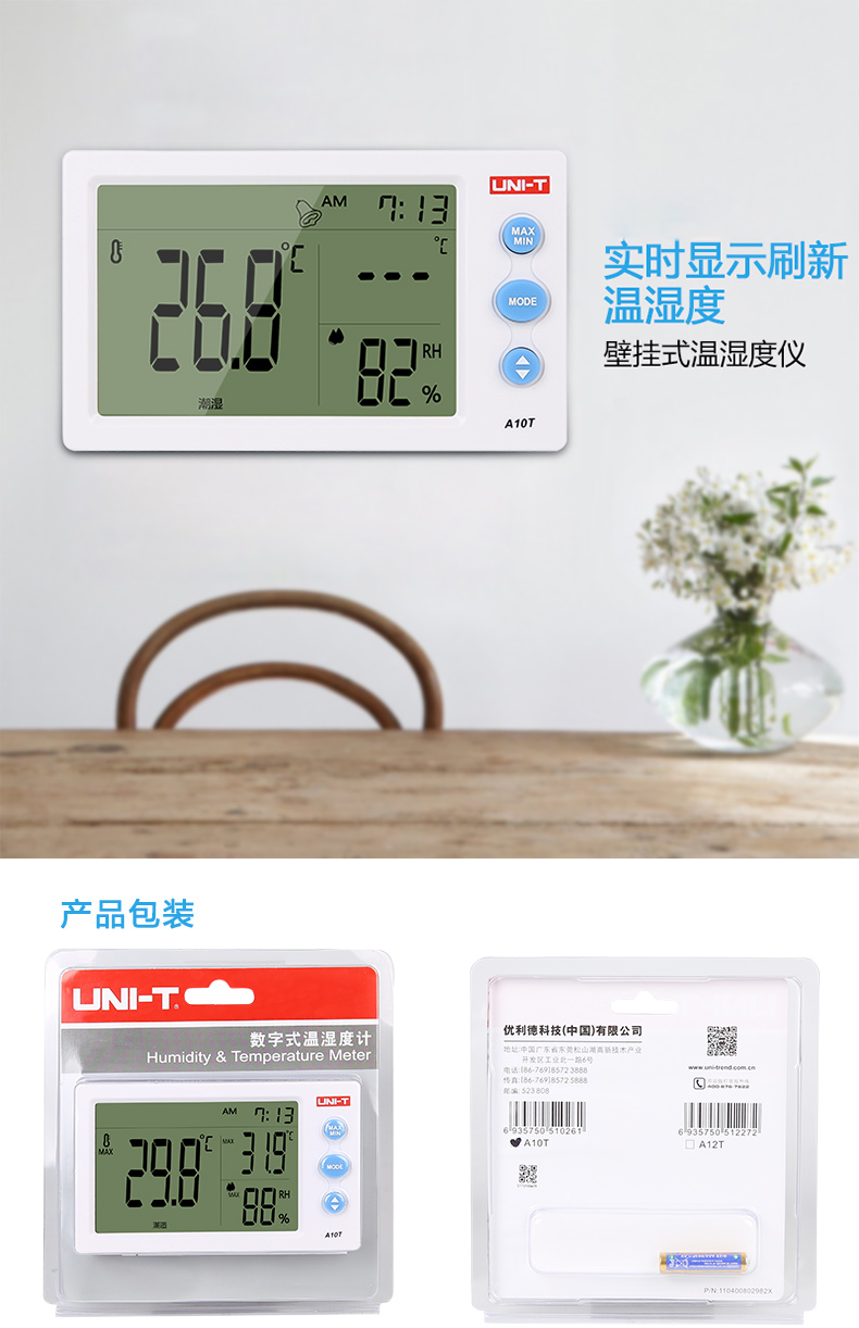 • 优利德数字大屏温湿度计家用室内婴儿房电子温度计湿度计室外闹钟