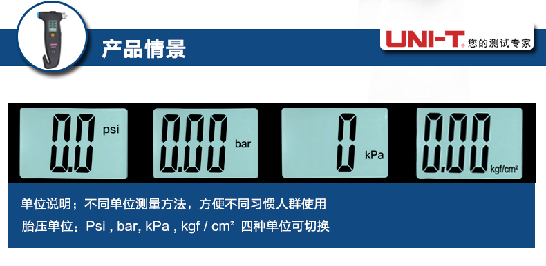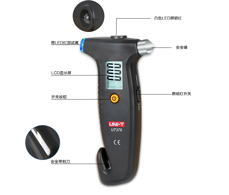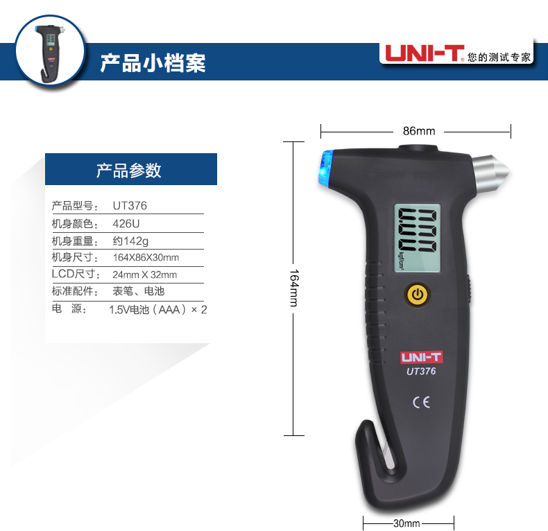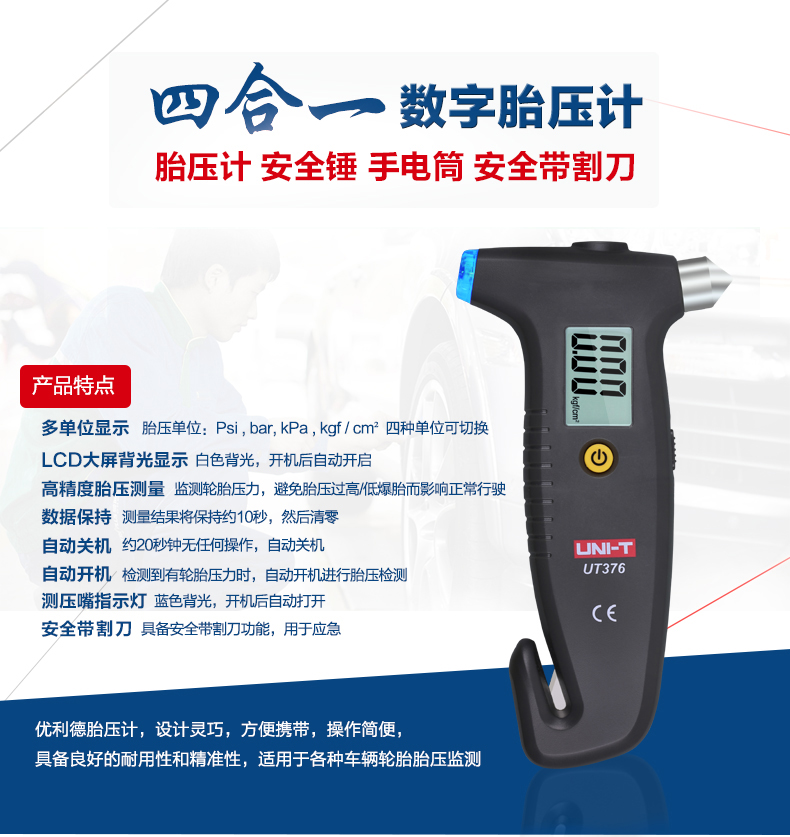 • 优利德高精度汽车数字胎压计数据保持 车用胎压表轮胎气压表UT376