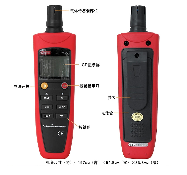 • 优利德家用一氧化碳检测仪 UT337A 气体报警器 警报器 测试仪
