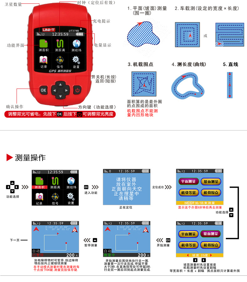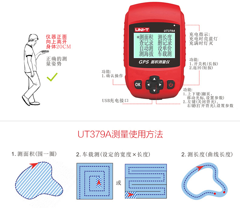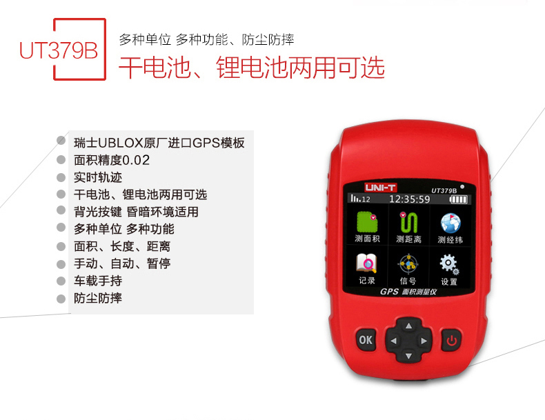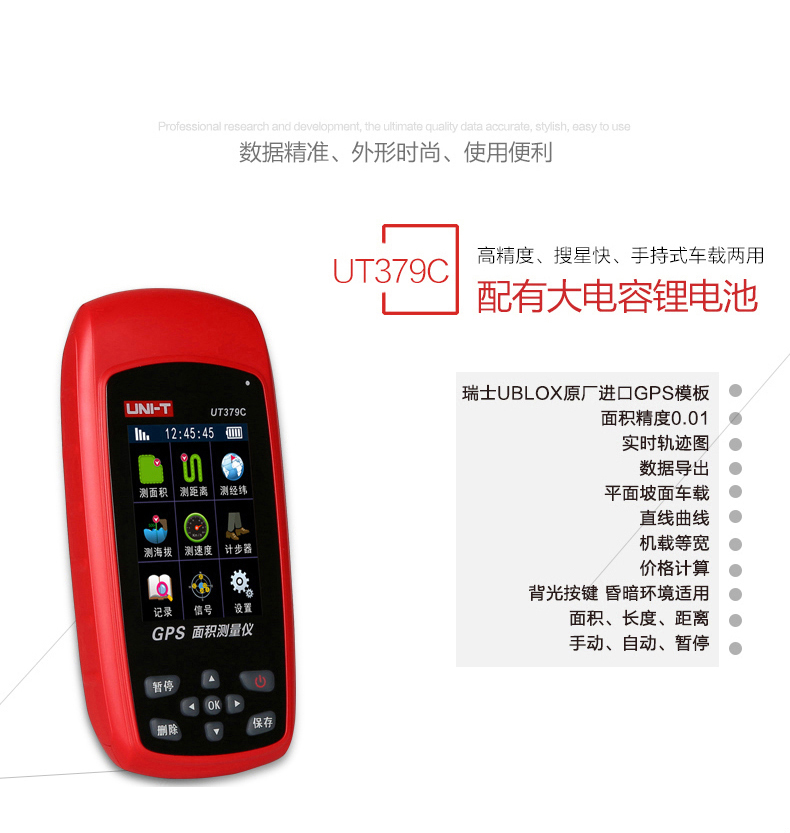 • 优利德UT379ABC高精度gps测亩仪测量仪器土地面积测量仪