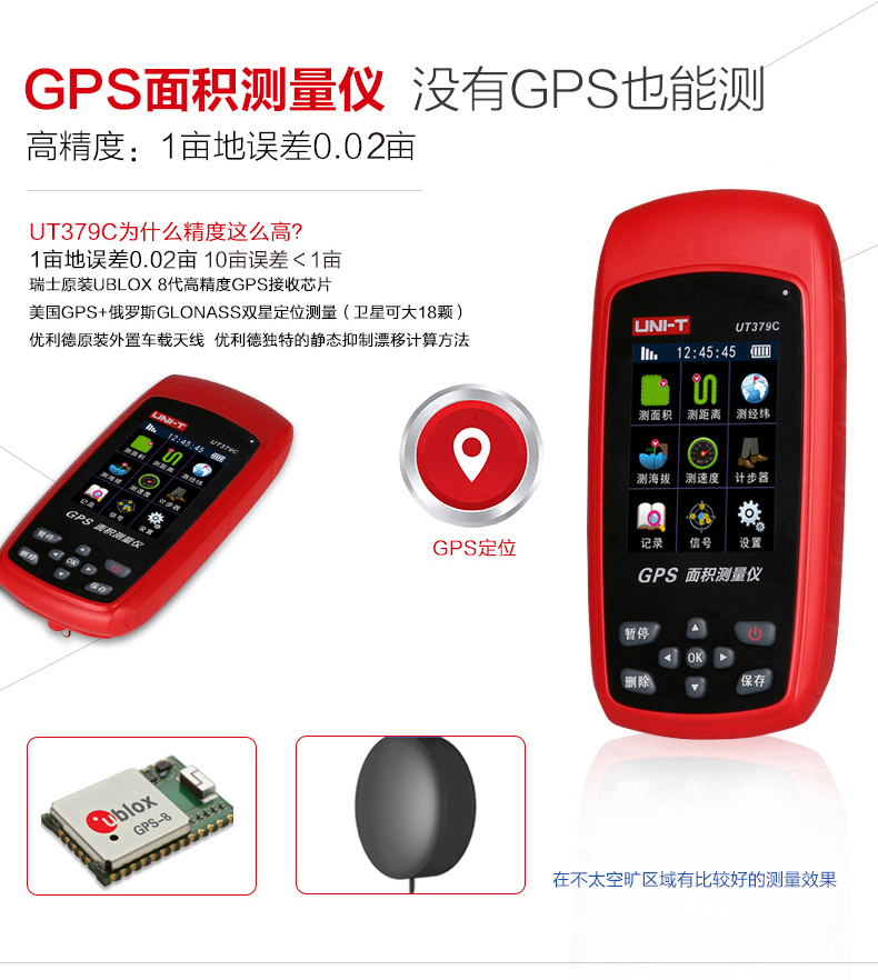 优利德UT379ABC高精度gps测亩仪测量仪器土地面积测量仪