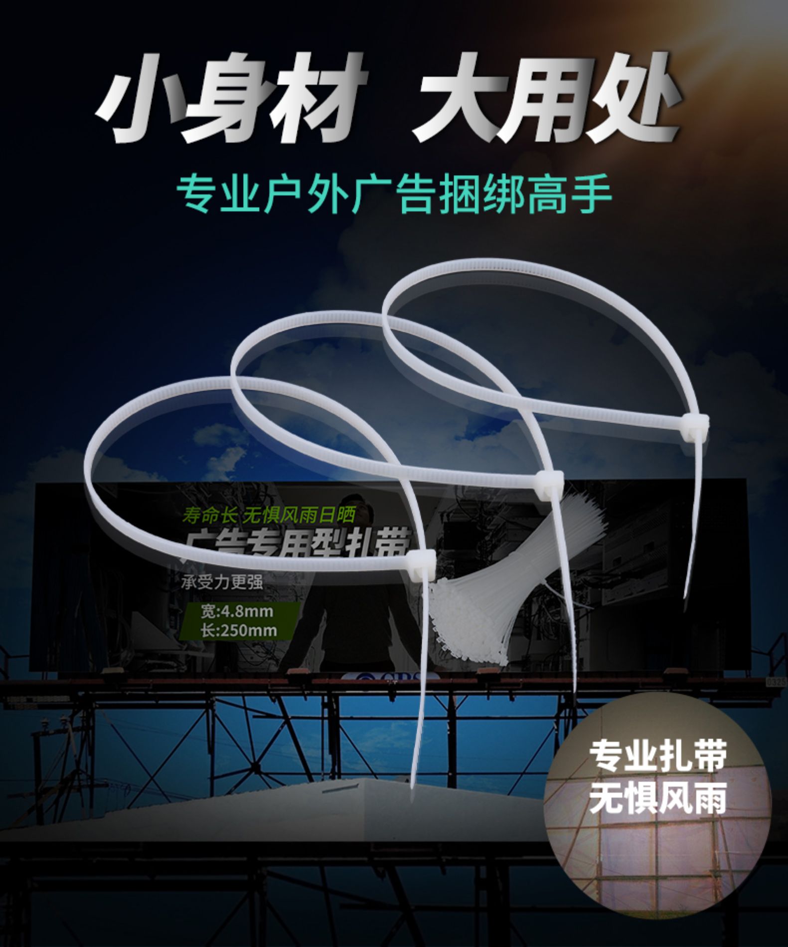 自锁式尼龙扎带5x250塑料卡扣固定座强力大号喷绘广告布招牌定制