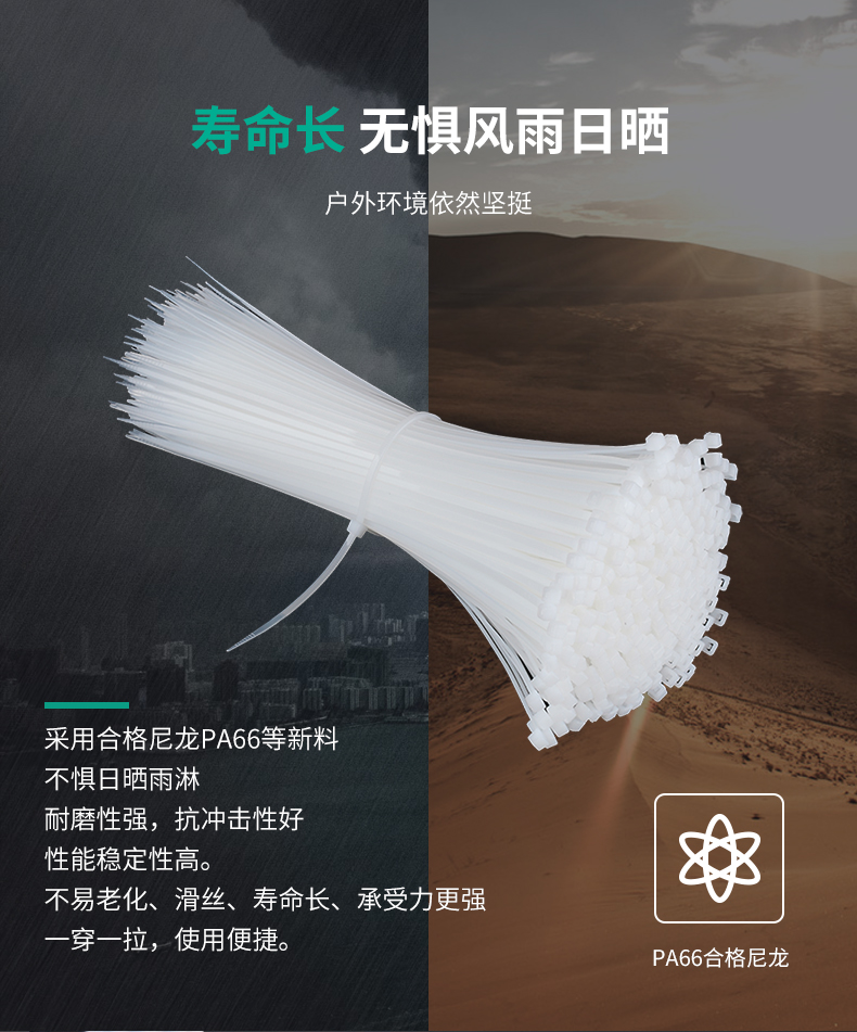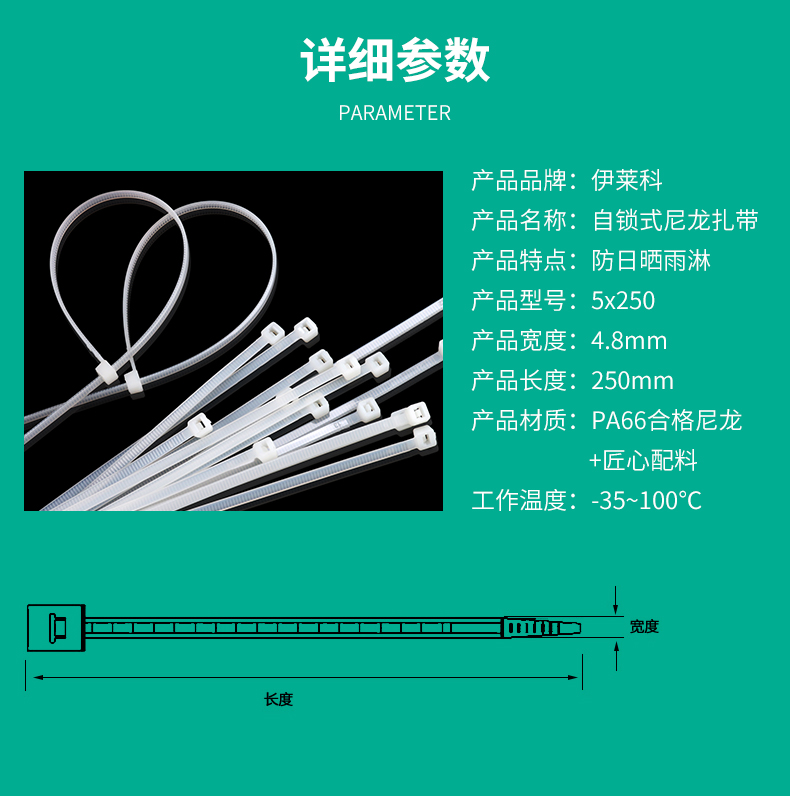 • 长虹自锁式尼龙扎带塑料卡扣捆绑带A级CHS-4*100白色扎带固定器