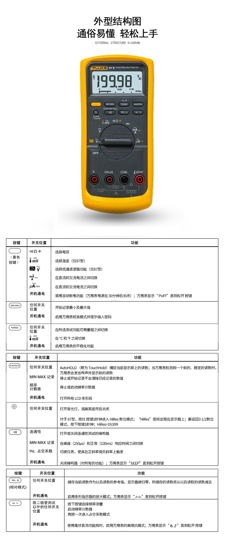 福禄克Fluke87V/C工业真有效值全自动多功能数字万用表