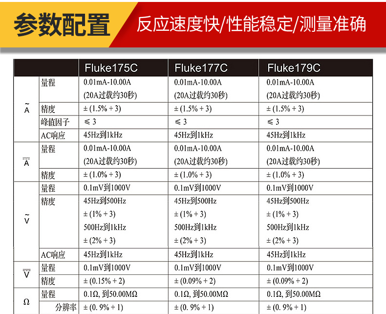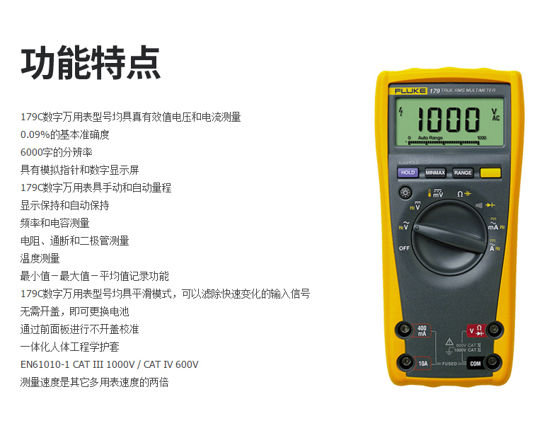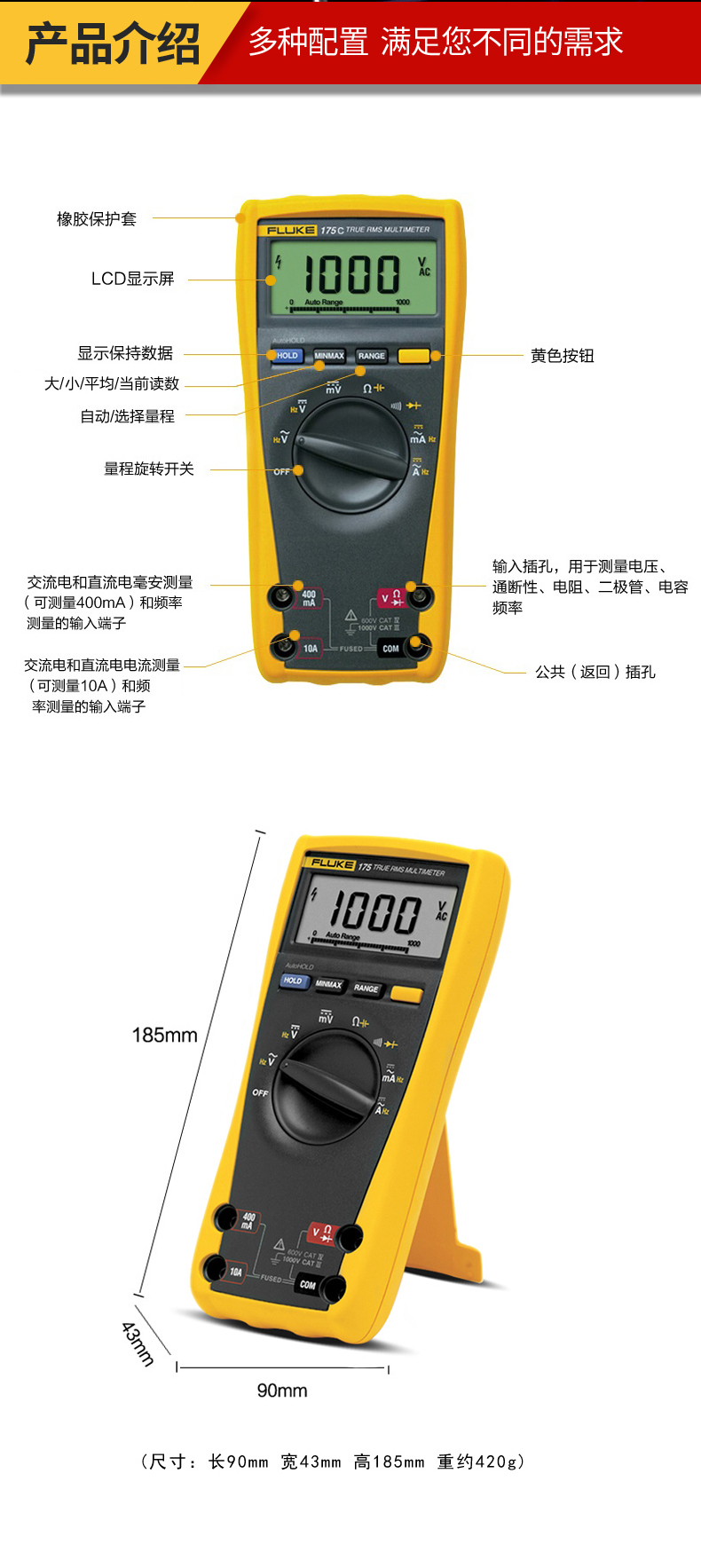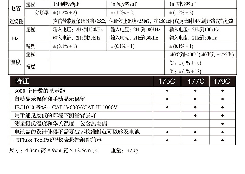 福禄克 Fluke 175C 通用型真有效值全自动高精度多功能数字万用表