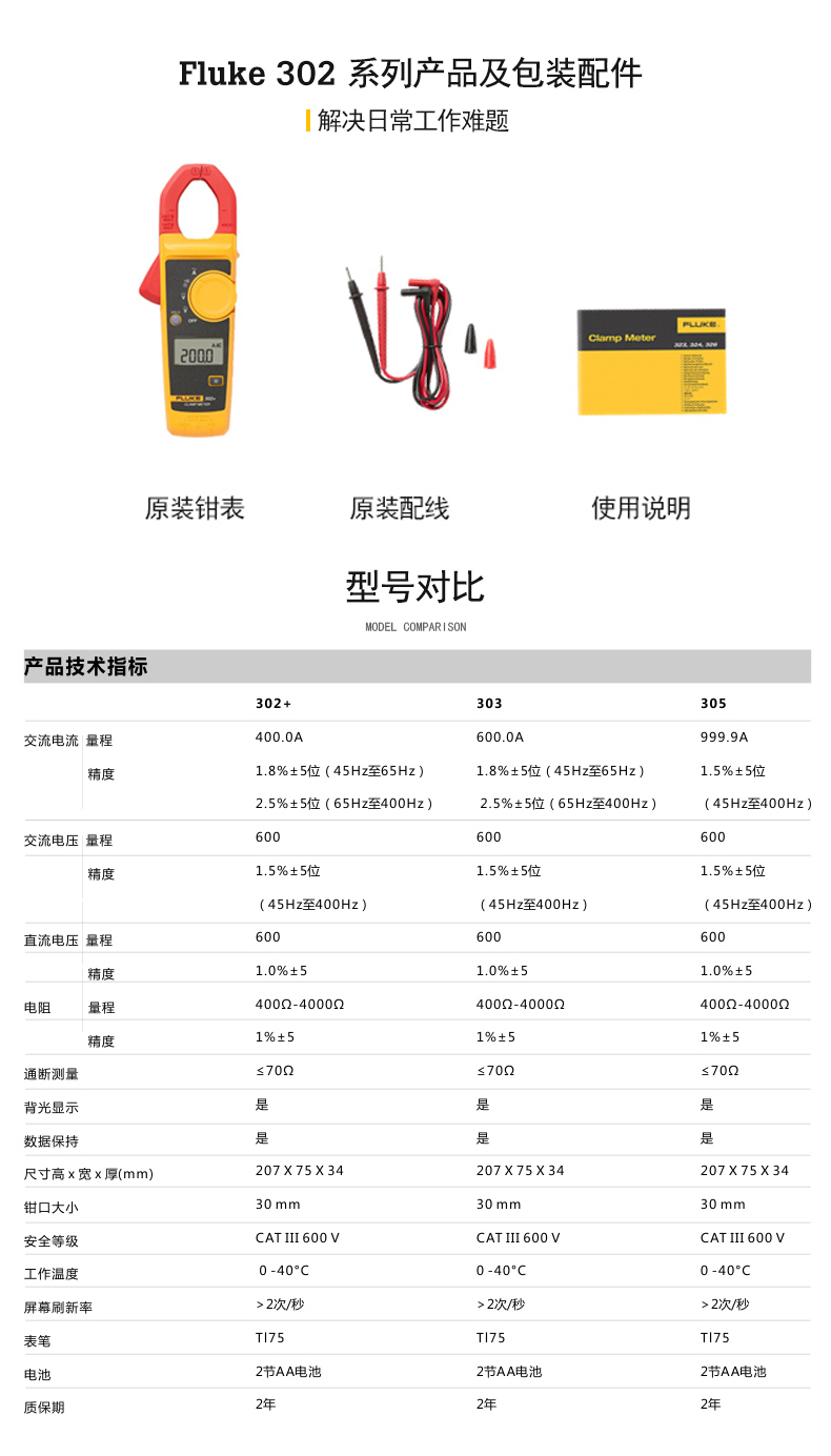 福禄克 Fluke 302+/303/305交流高精度万用数字钳形表