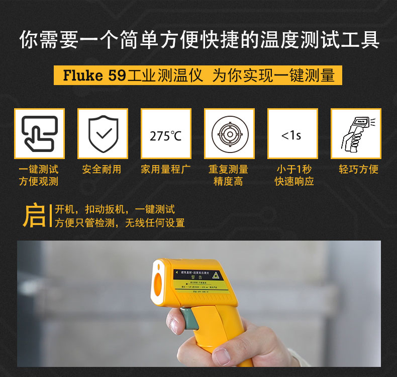 福禄克 Fluke 59 手持式红外测温仪 高精度工业点温计