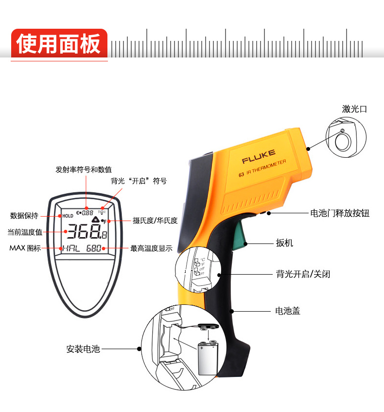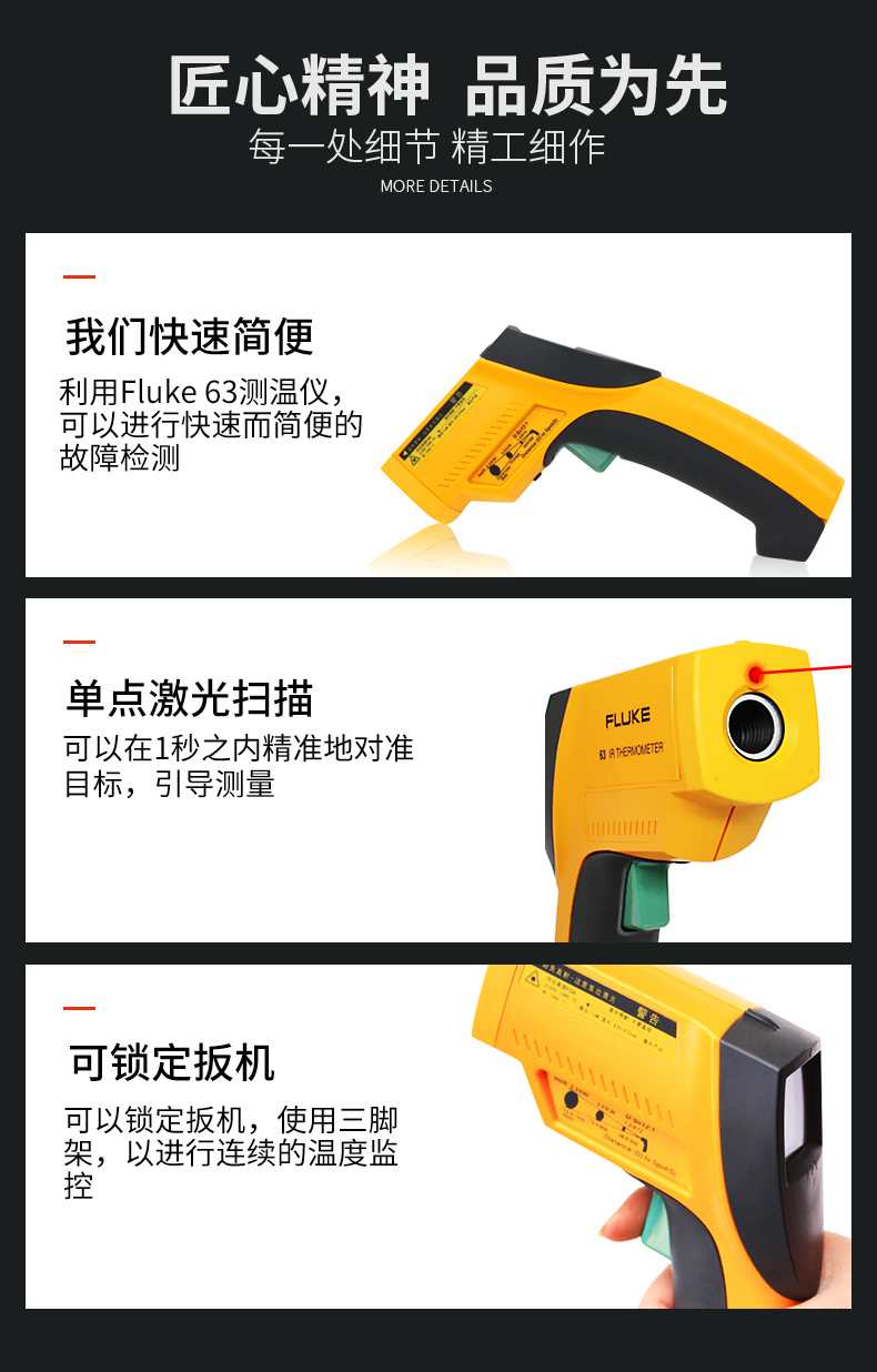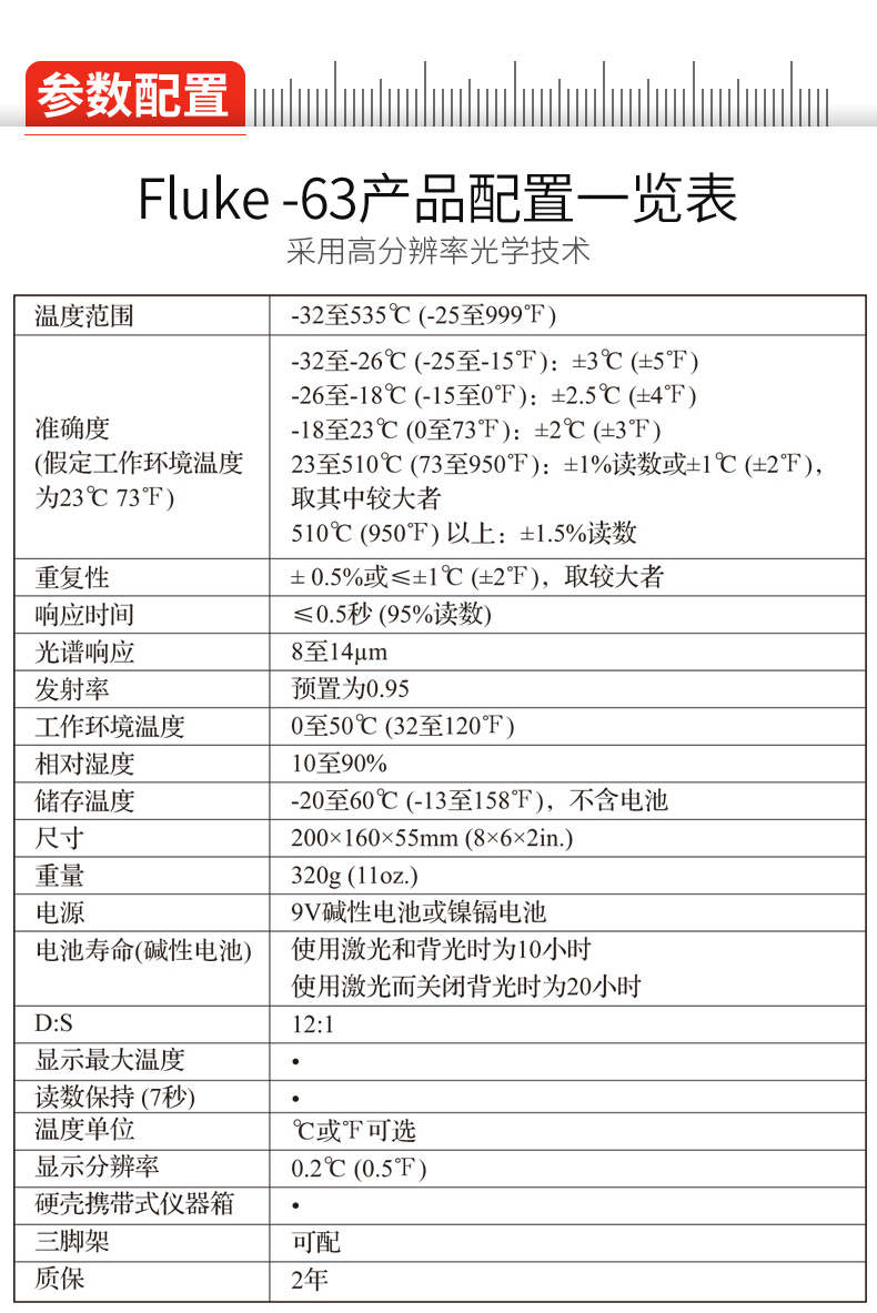 福禄克Fluke 63可调发射率高精度手持式红外线测温仪
