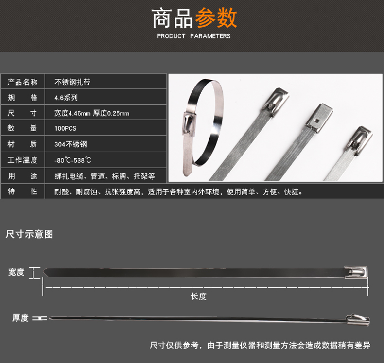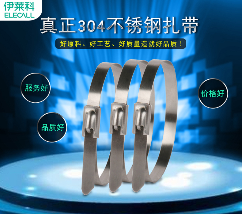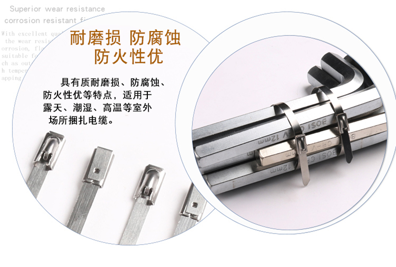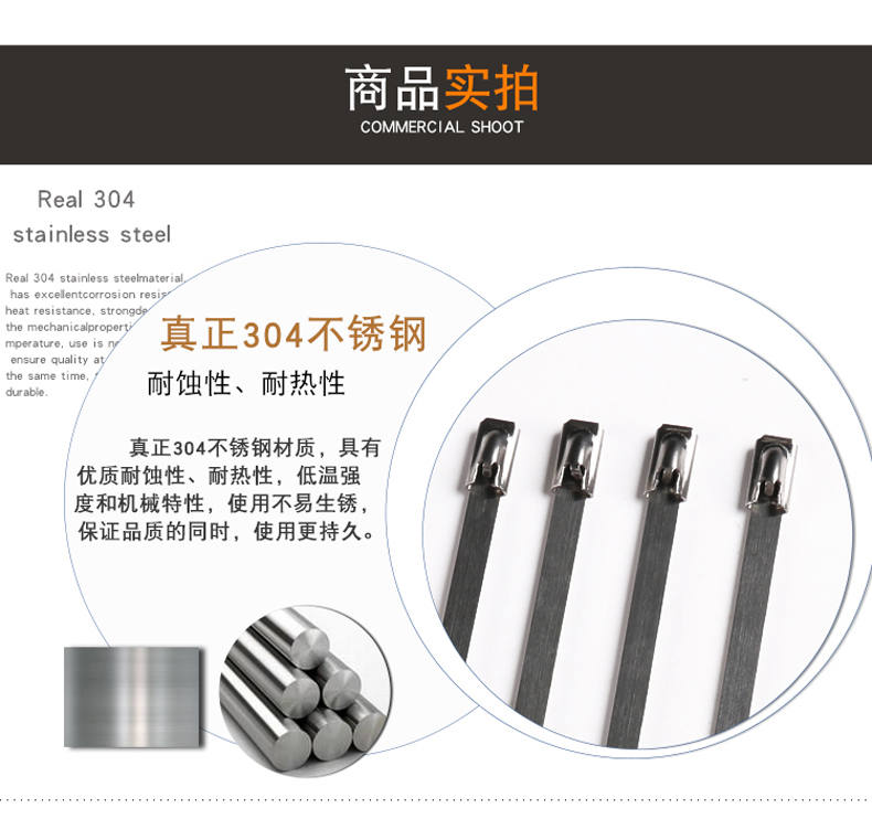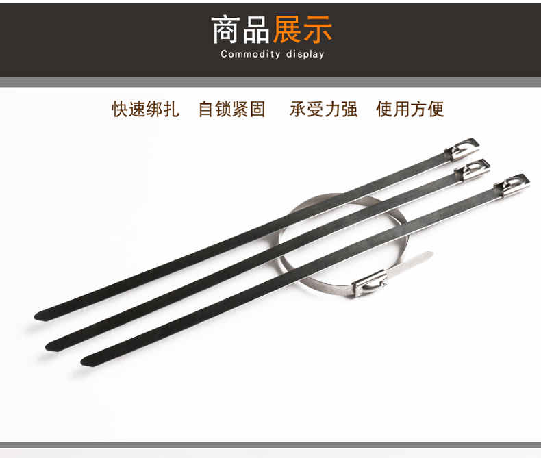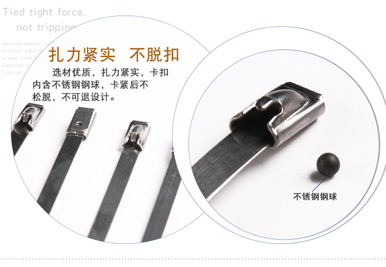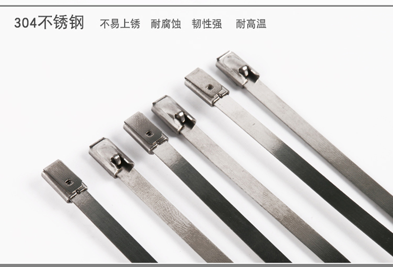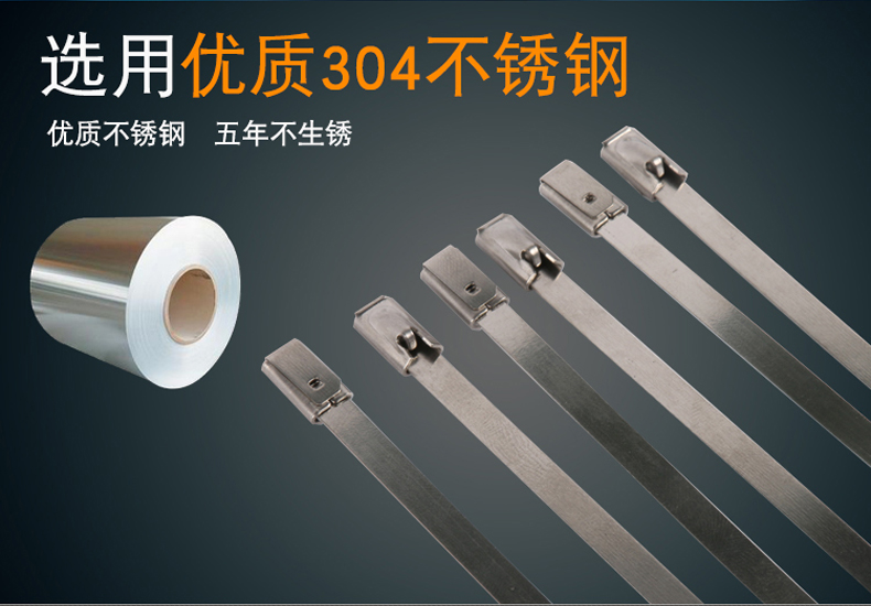 • 304不锈钢扎带自锁式抱箍卡扣带4.6*900~3000固定器金属白钢扎带