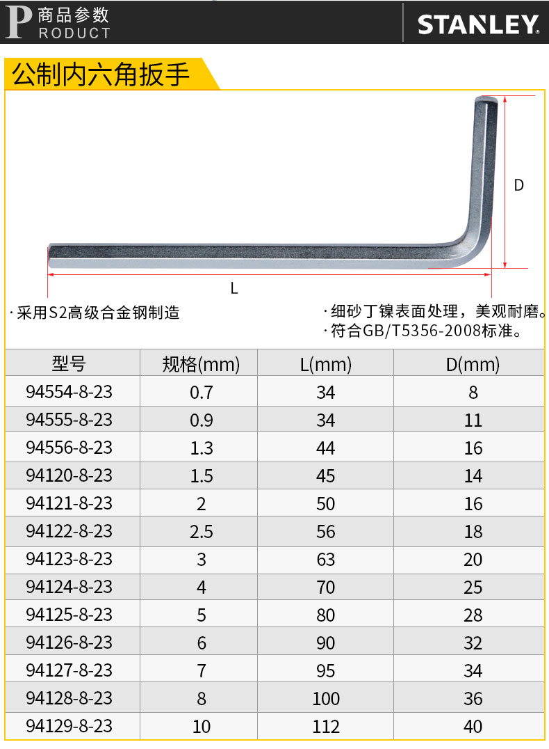 史丹利公制内六角扳手