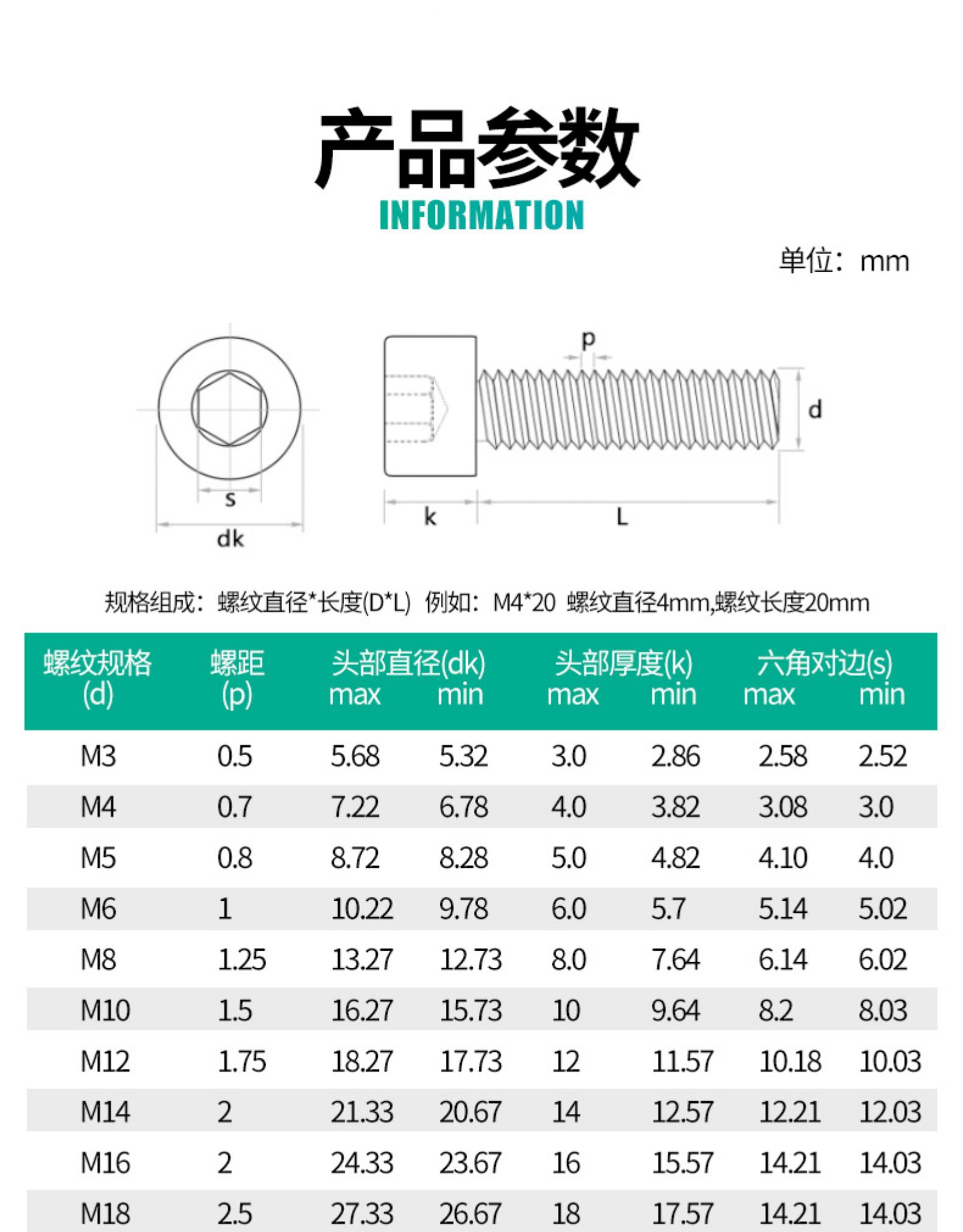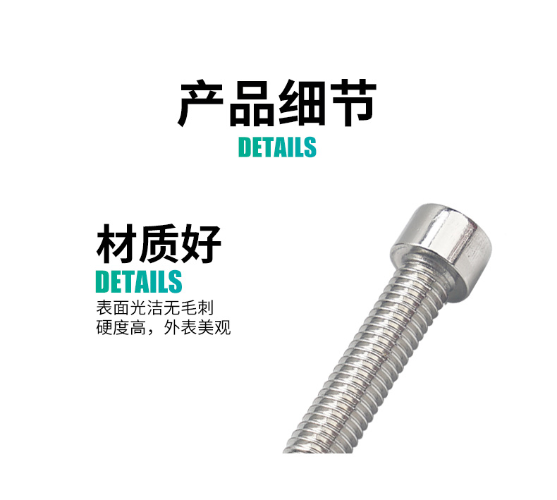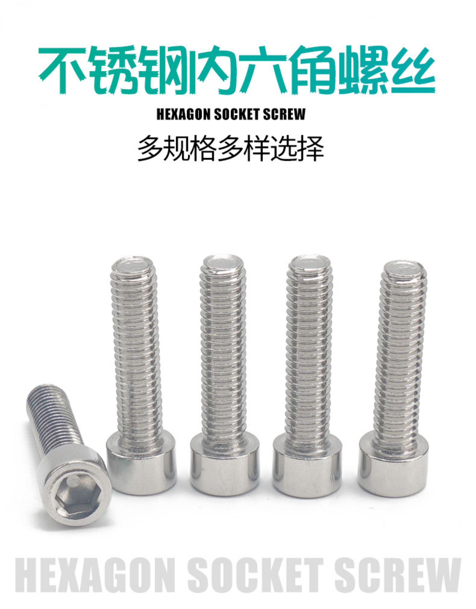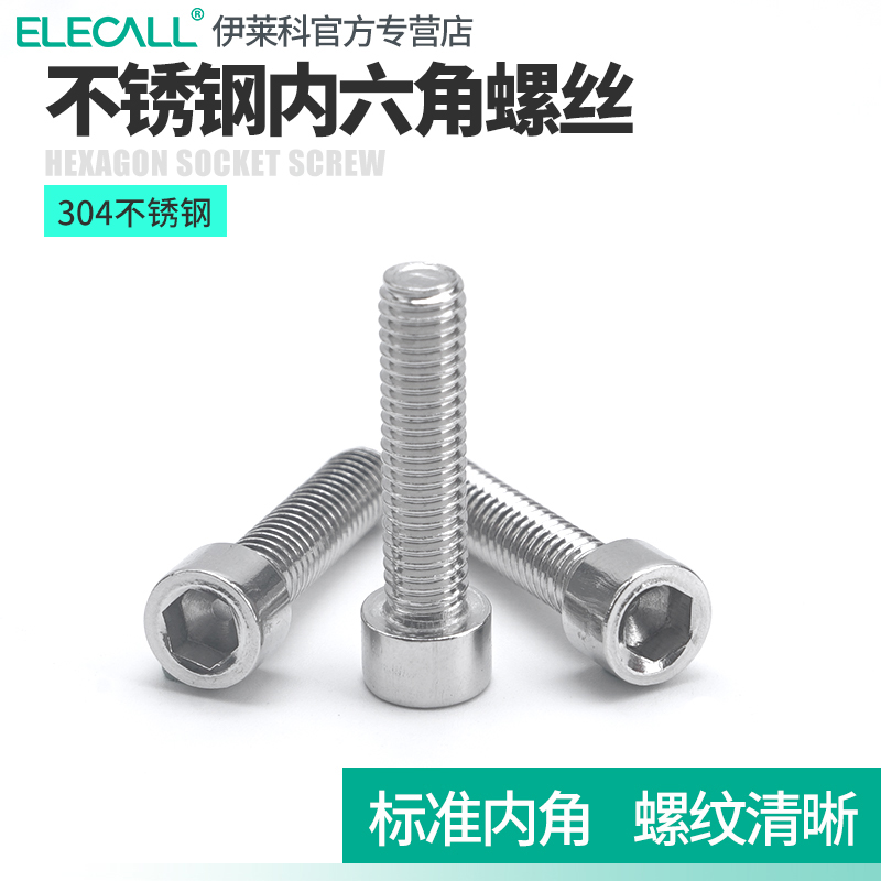 • 伊莱科304不锈钢M4M6M8M10内六角螺丝螺钉螺帽加长圆柱头平垫弹垫