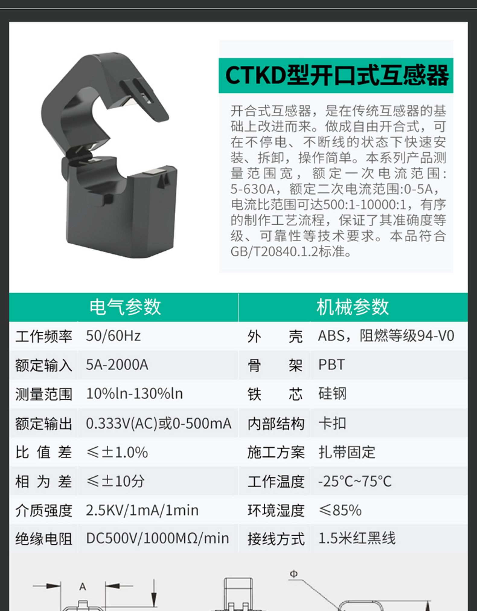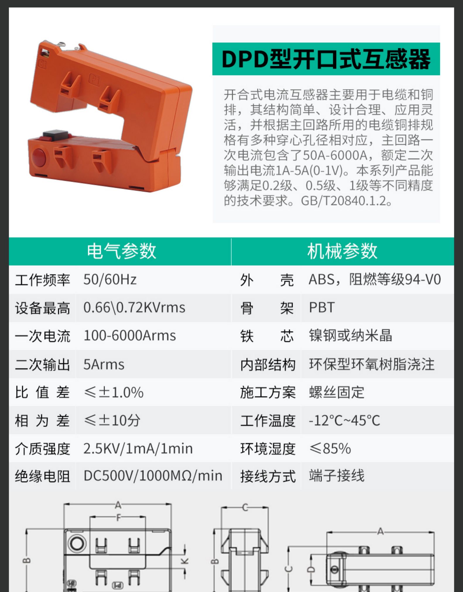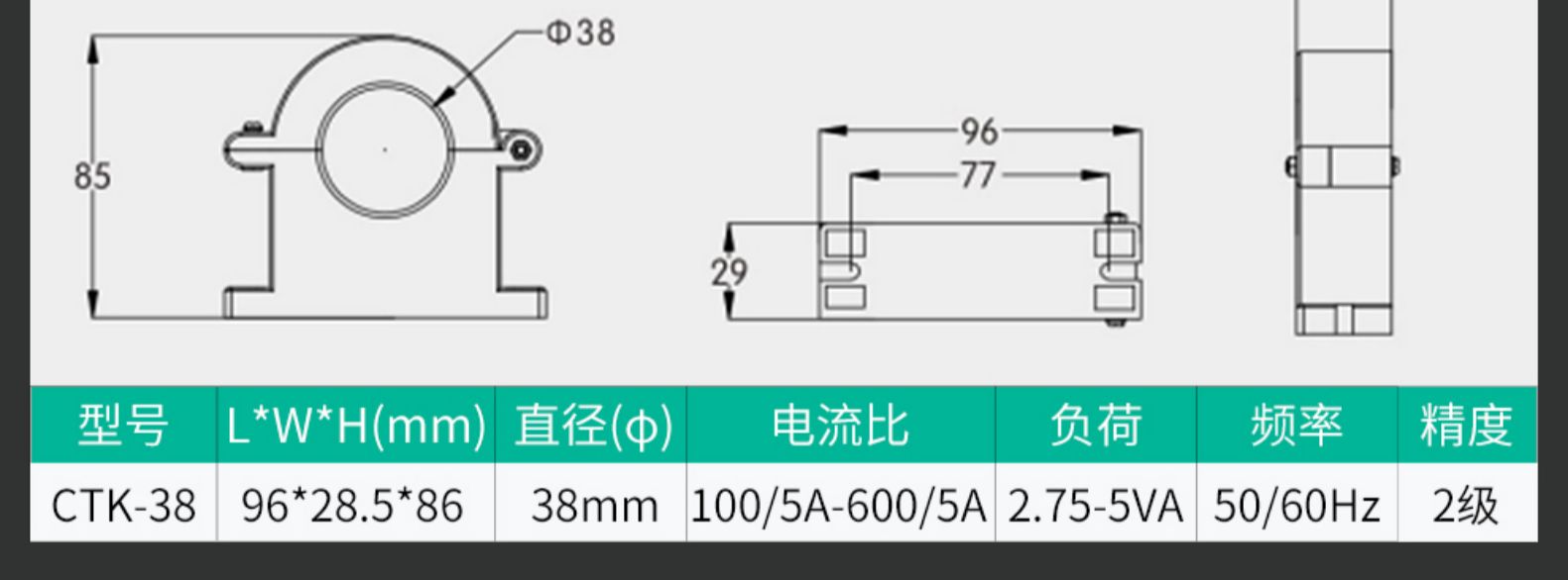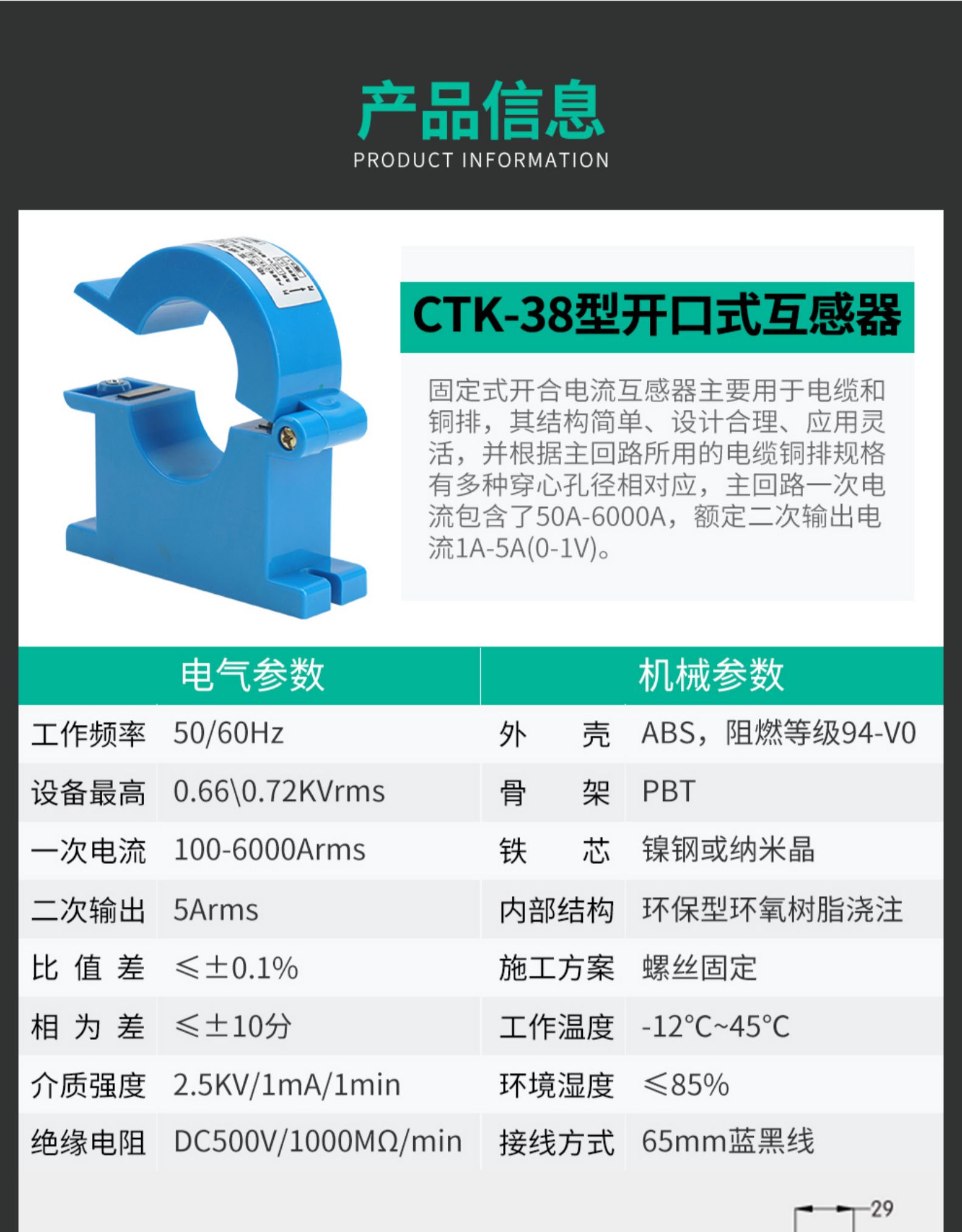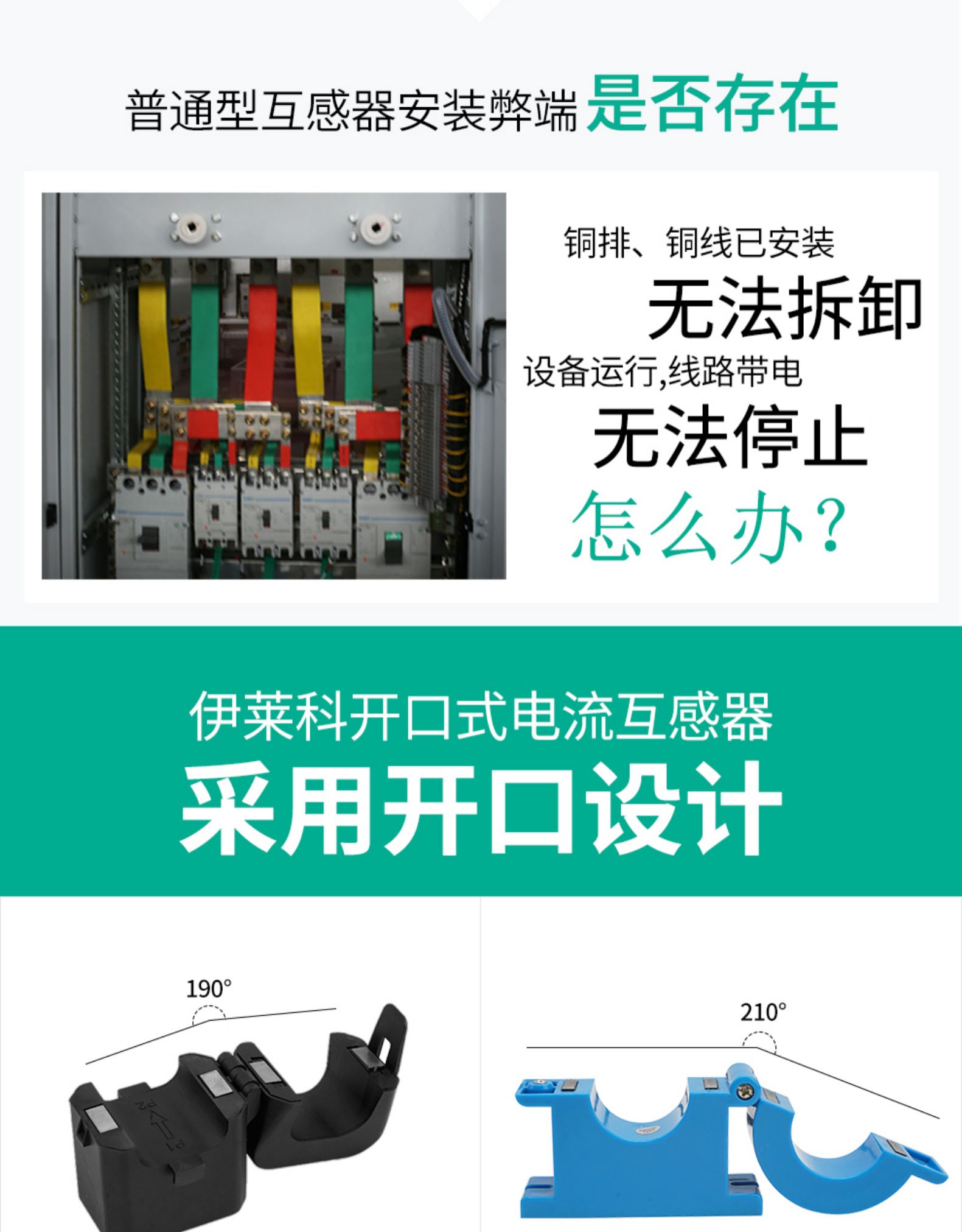 • 伊莱科开口式电流互感器三相CTK38小型开启开合式交流互感器电表