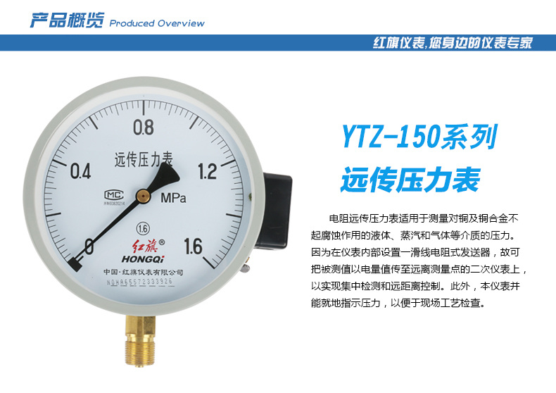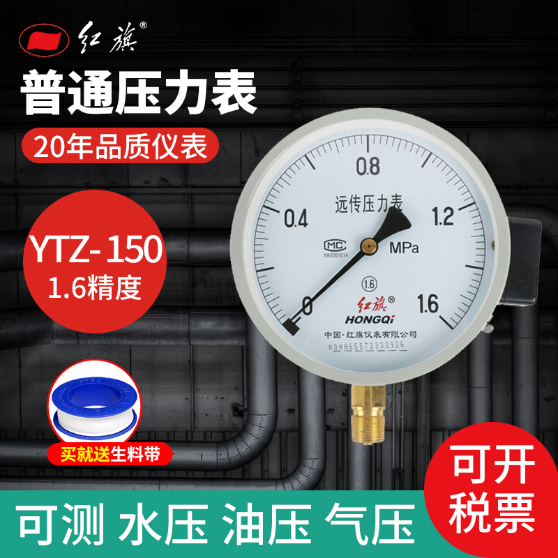 红旗电阻远传压力表YTZ-150径向0-16Mpa全规格水表气表油表需定制