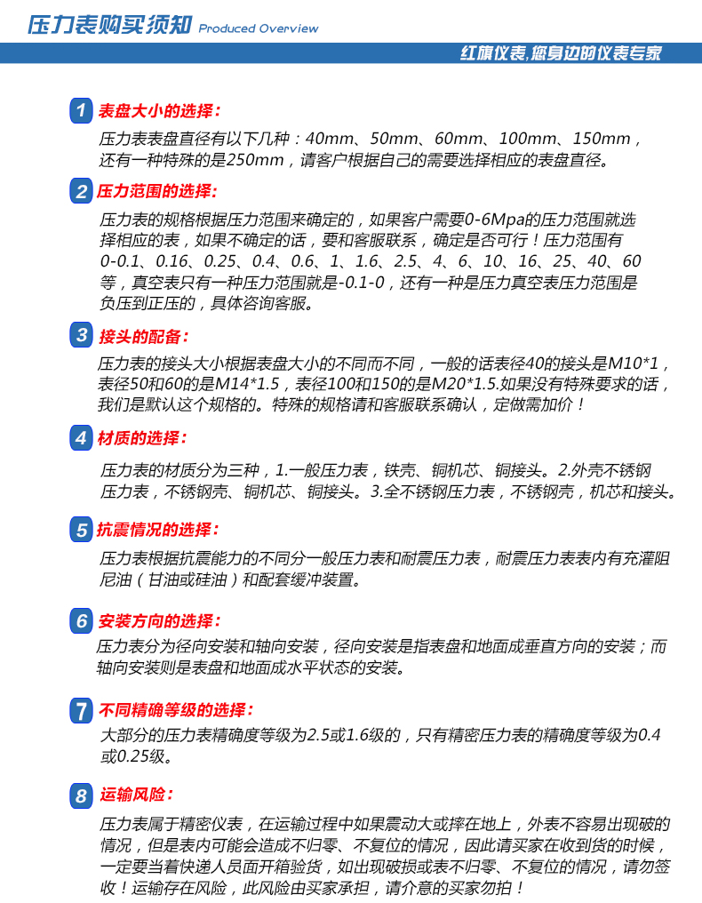 • 雷尔达压力表 Y-150 0-0.25MPA