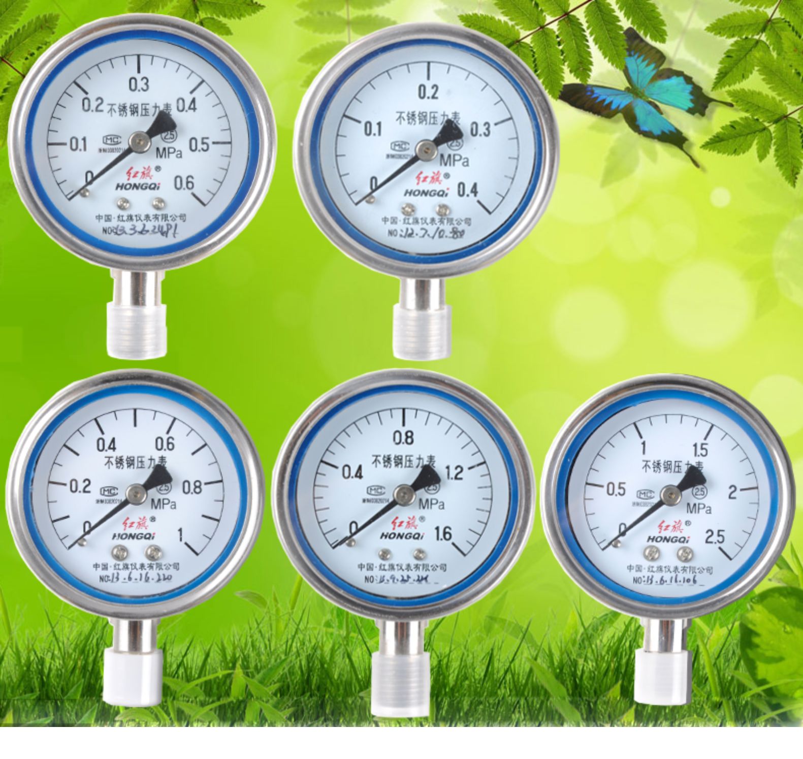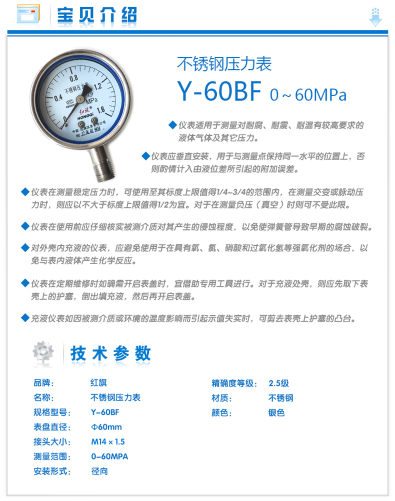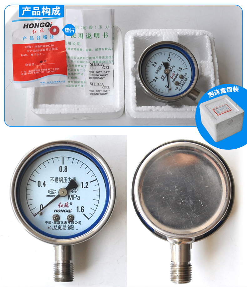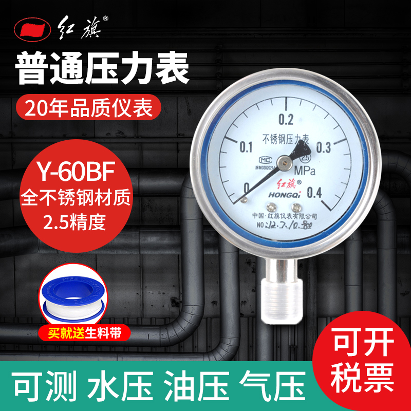 红旗全不锈钢压力表 Y-60BF 径向 全规格高温压力表Z-60BF真空表