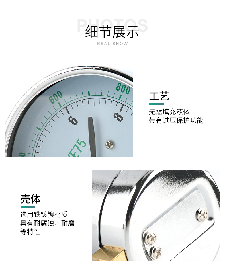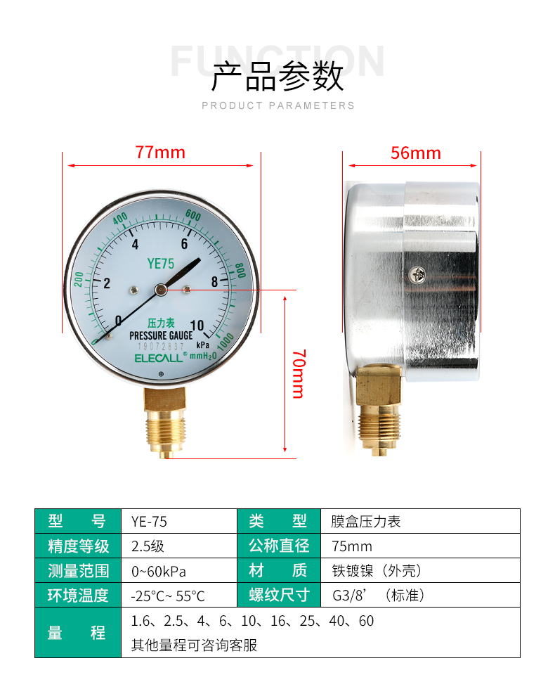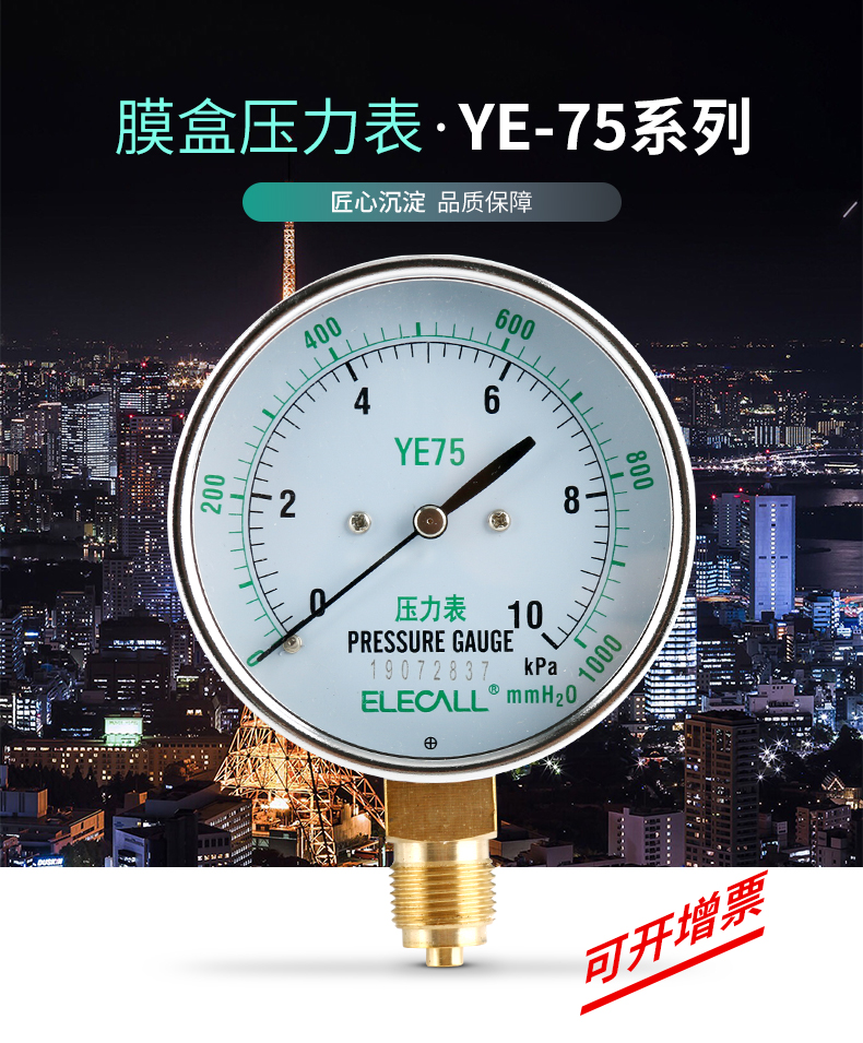膜盒压力表 YE-75 微压表 0-10KPA 0-16KPA 0-30KPA 过压防止型
