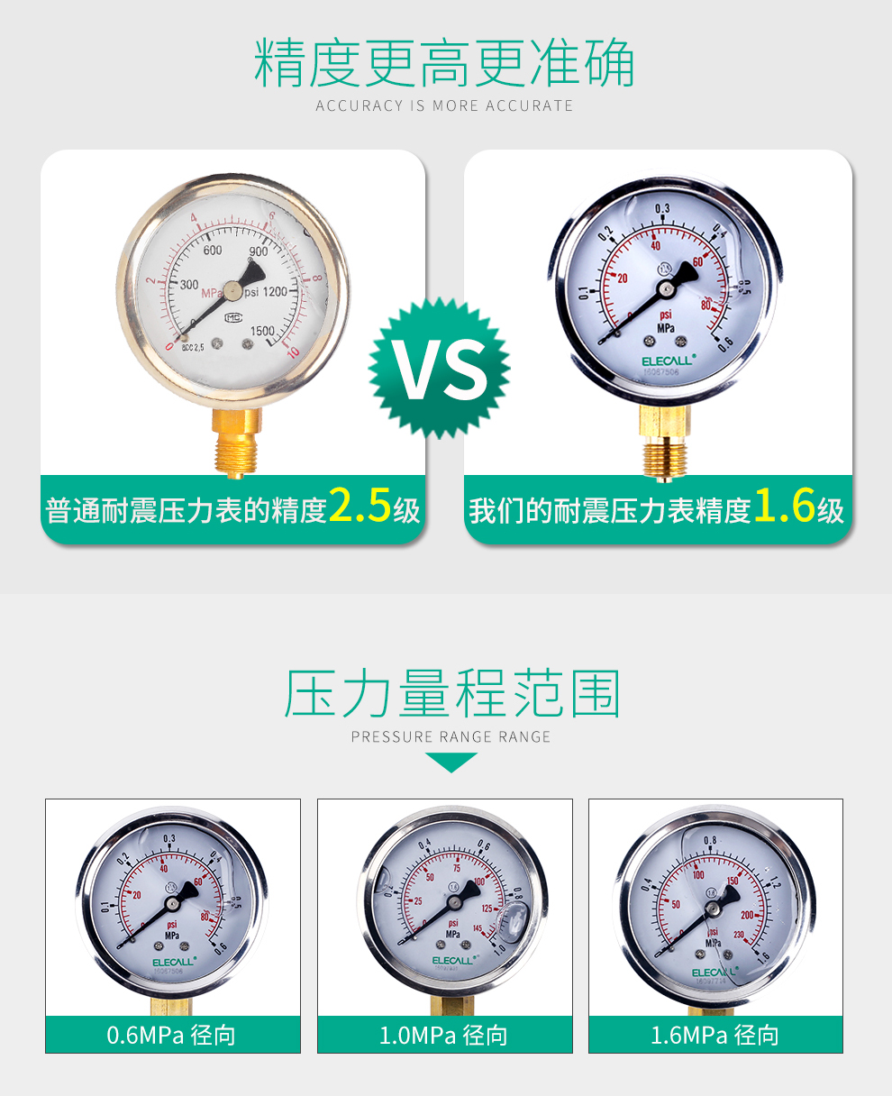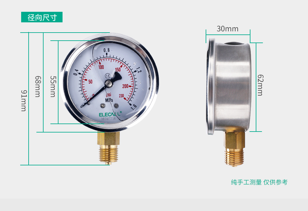 • 雷尔达耐震压力表 YN-60 0-25MPA