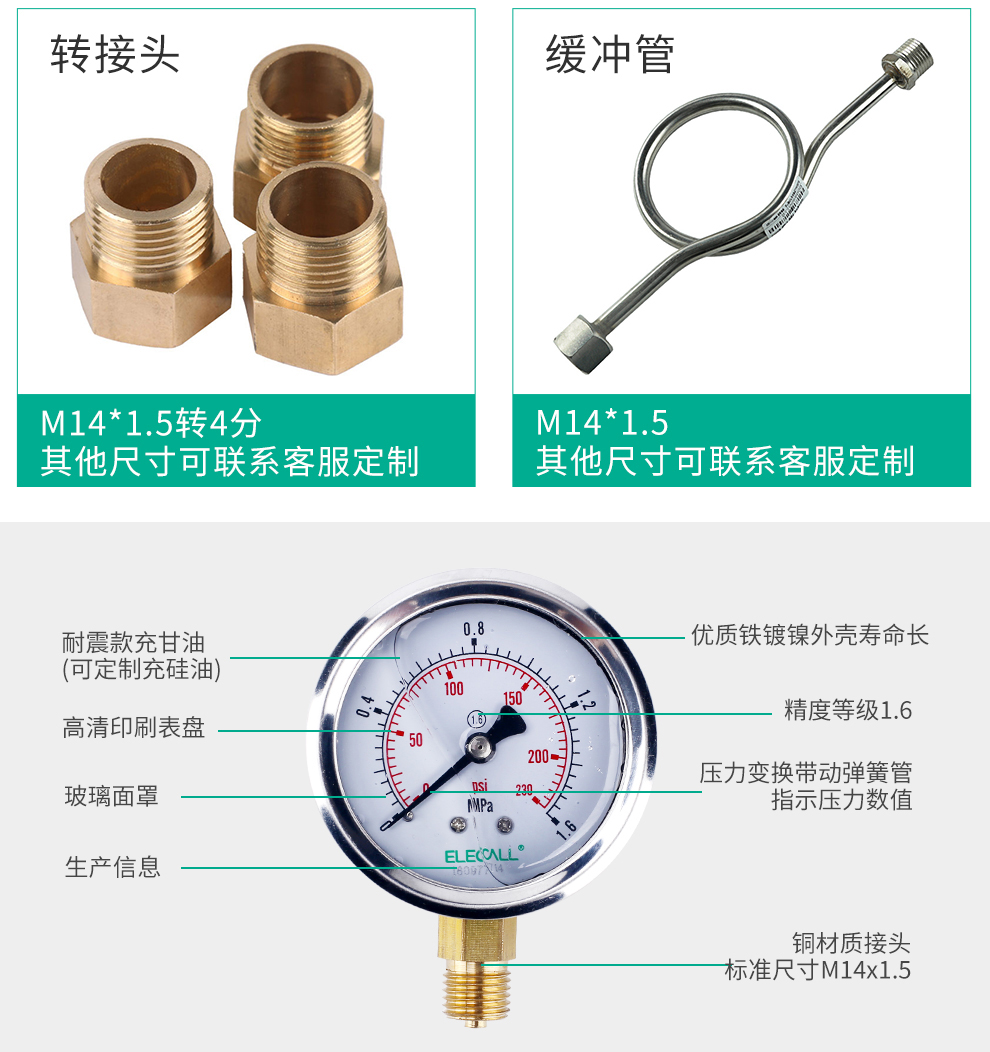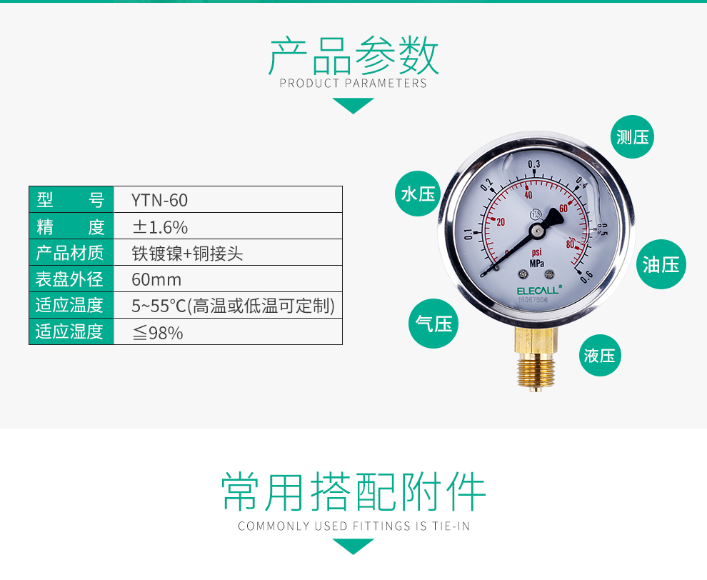 • 雷尔达耐震压力表 YN-150 0-60MPA