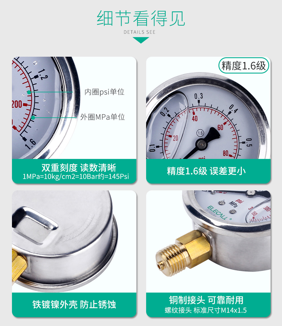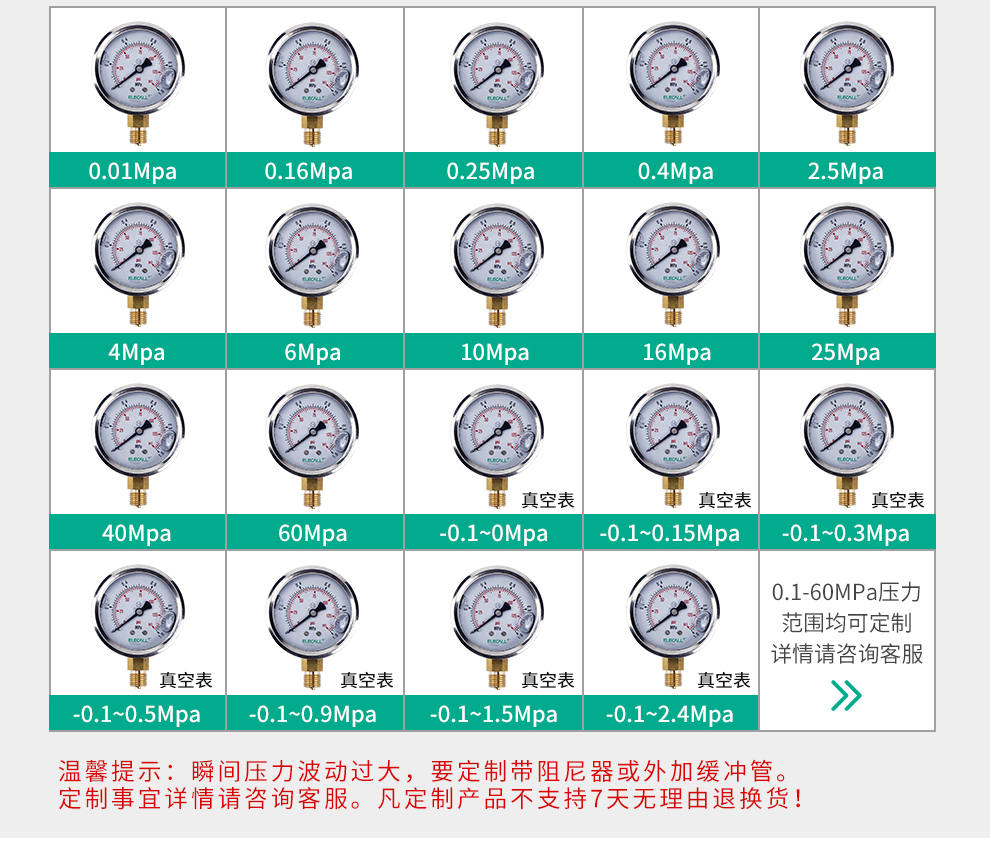 • 雷尔达耐震压力表 YN-100 0-1MPA