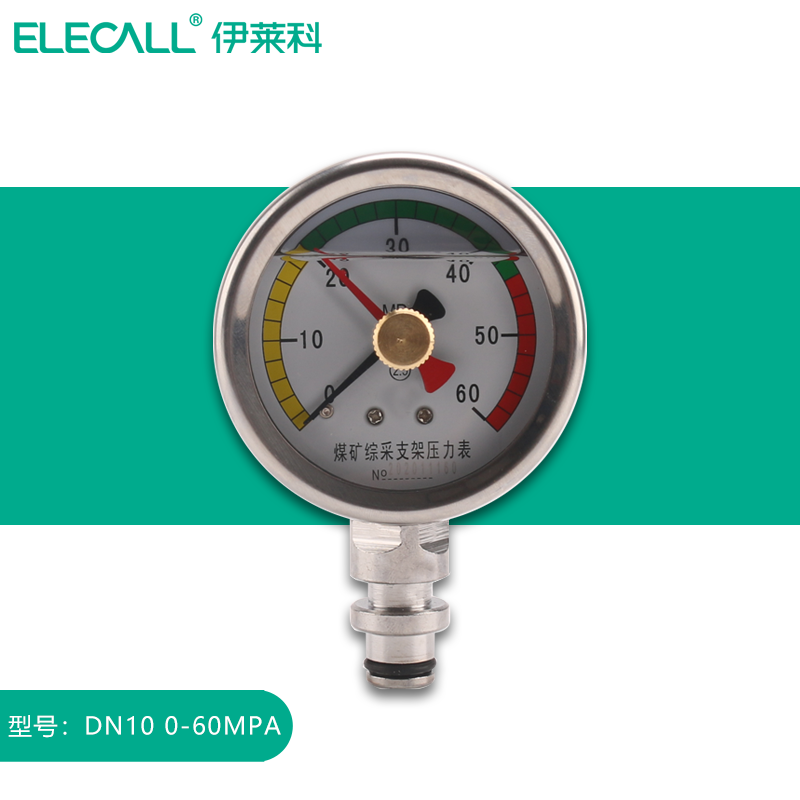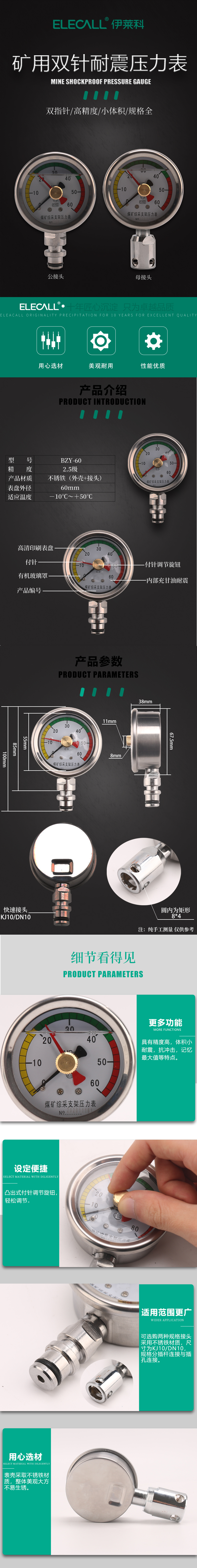 伊莱科径向耐震矿用双针压力表BZY-60公头母头煤矿耐震双针压力表