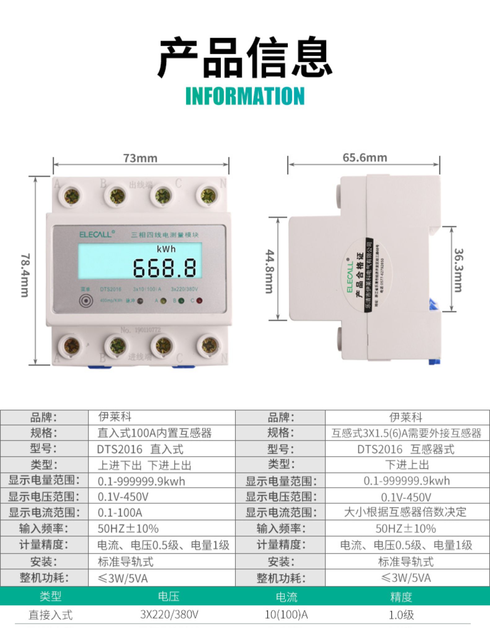 超过100A的需接互感器 详询客服 支持定制