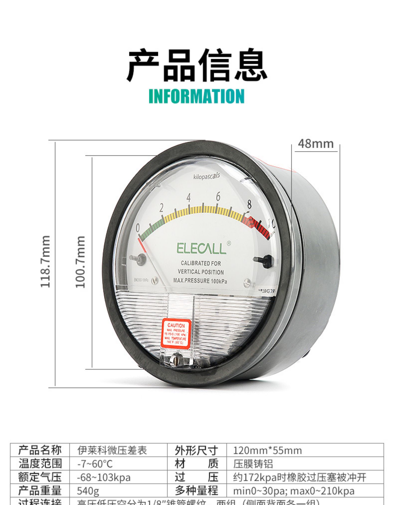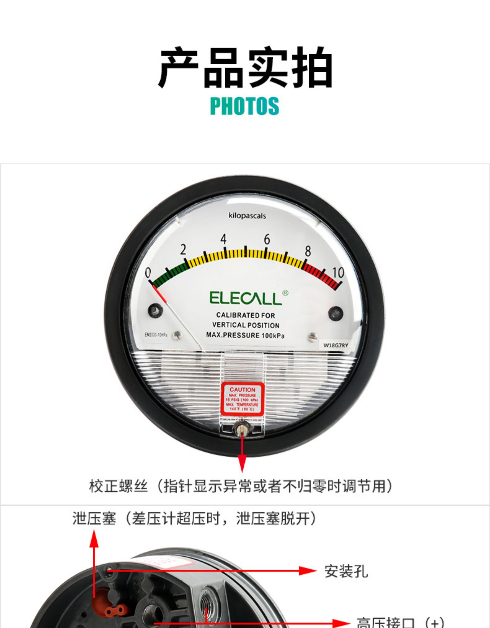 • 伊莱科数显指针正负压差计EM2000负压病房空气洁净室养殖用压差表