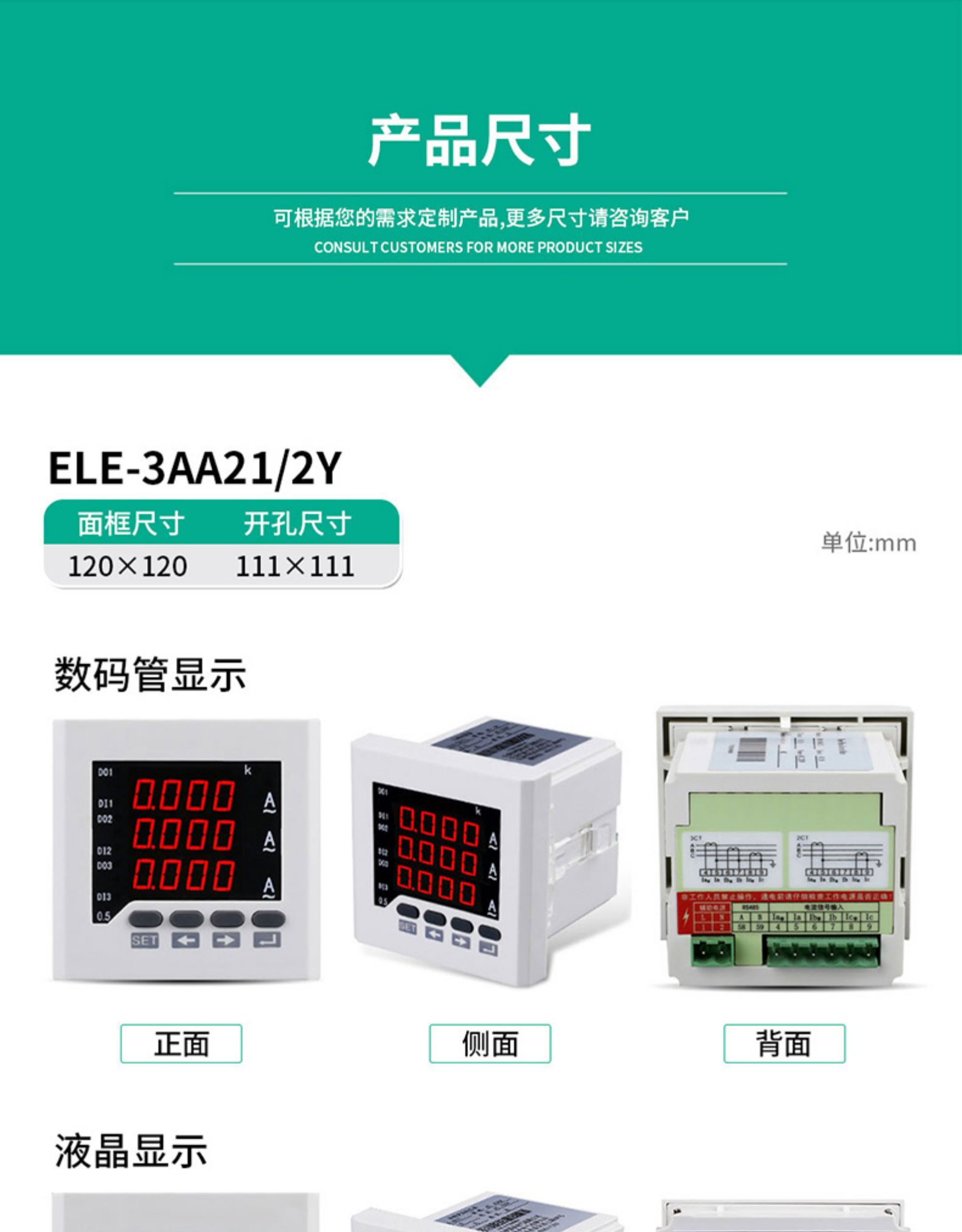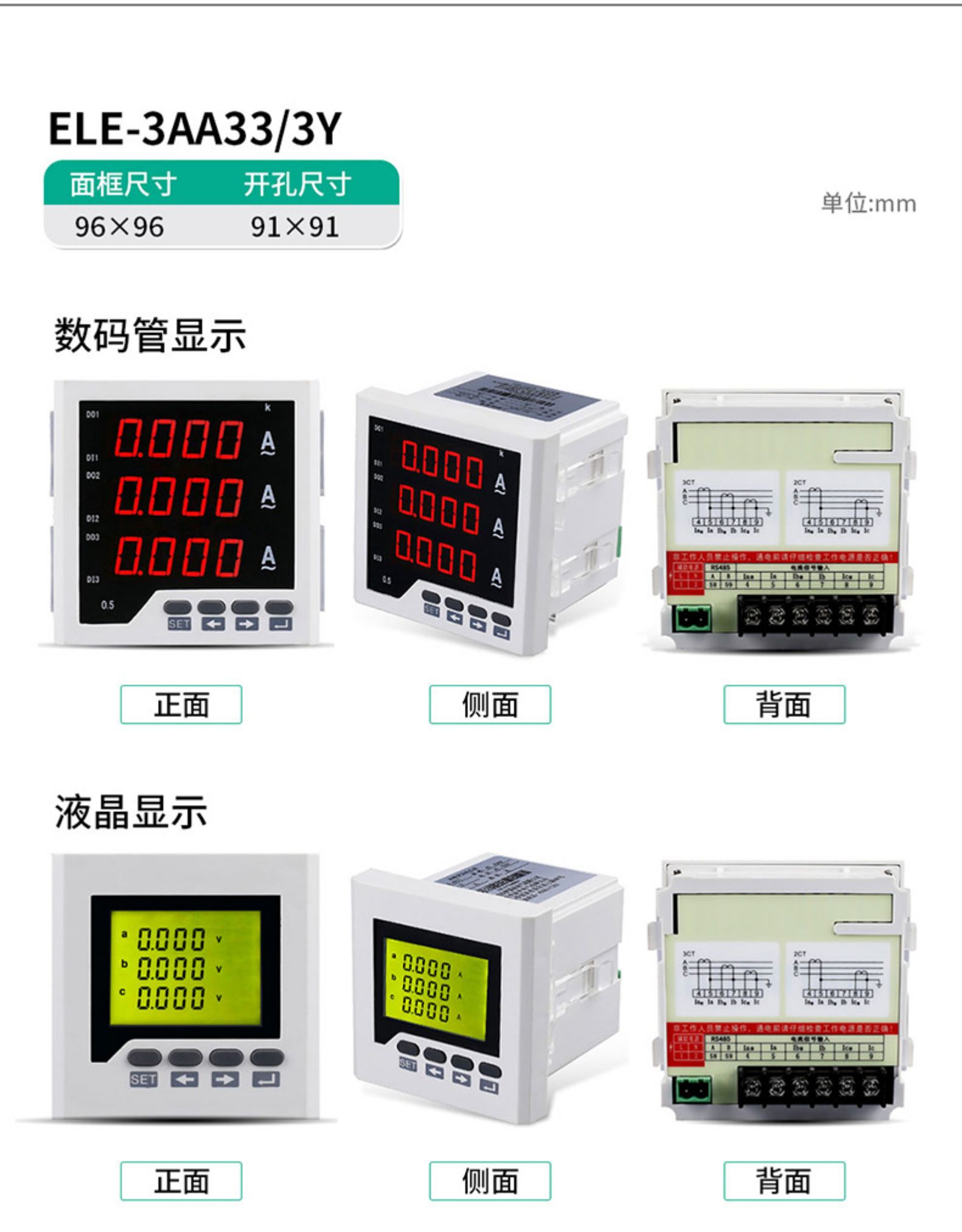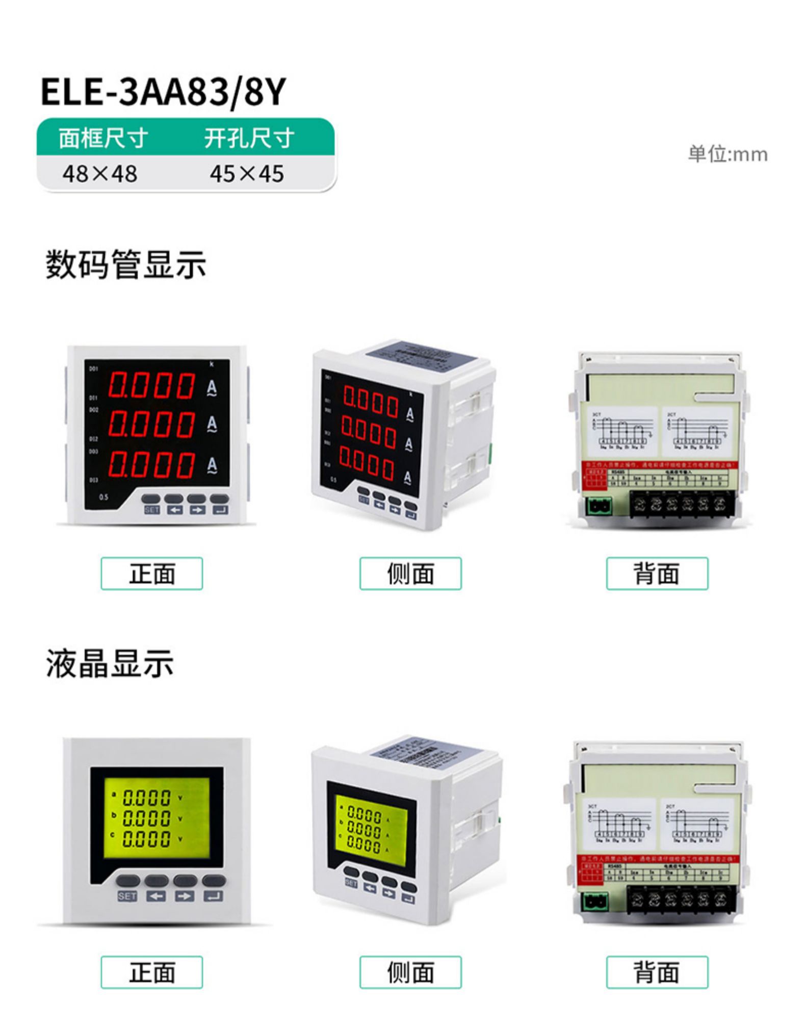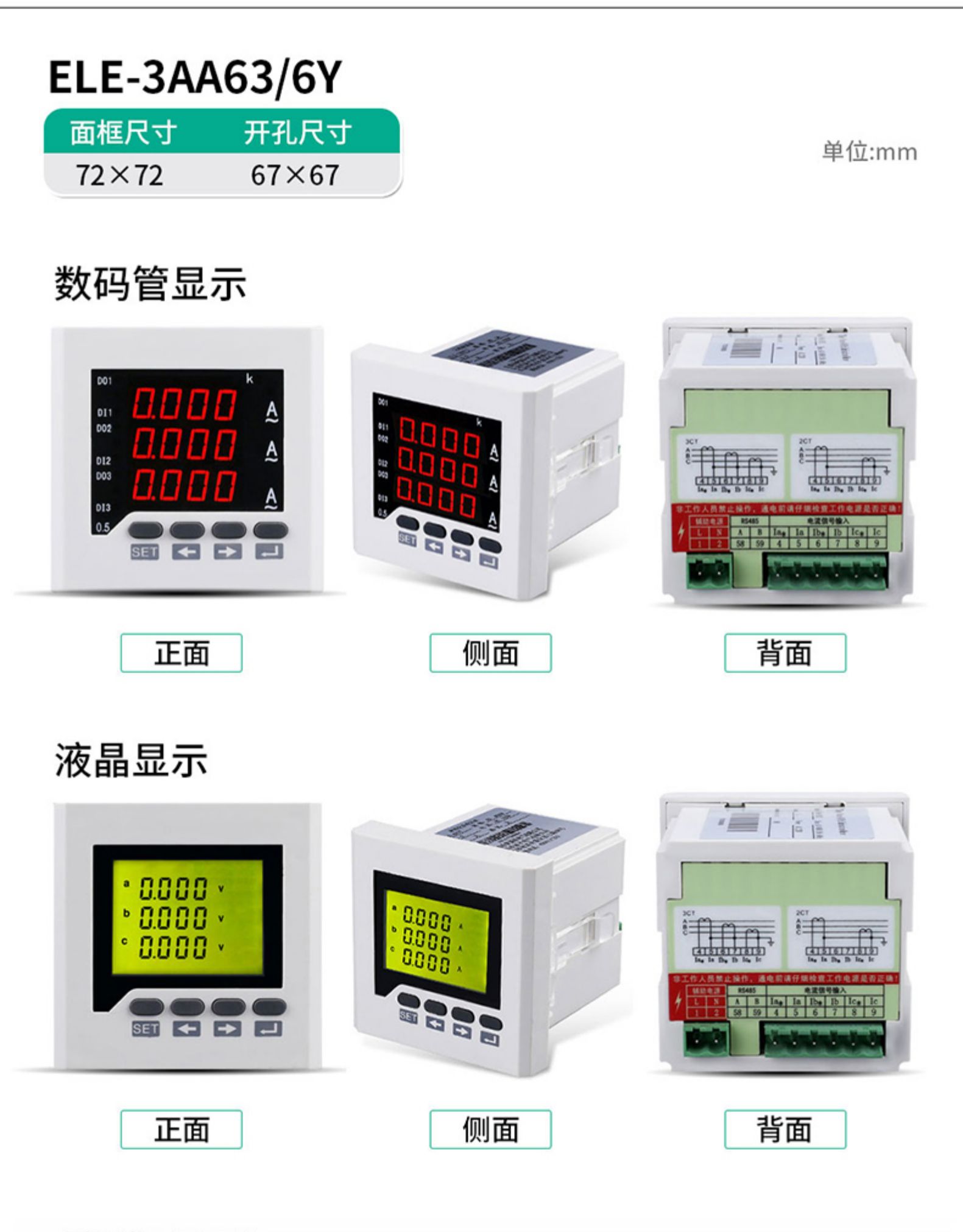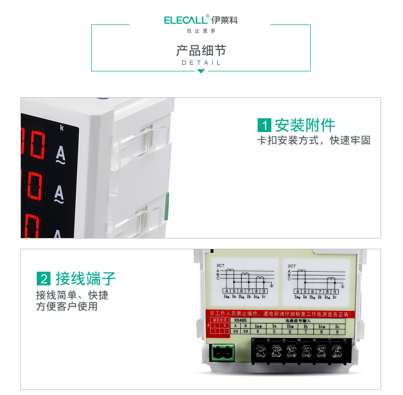 • 伊莱科数显三相电流表ELE-3AA63/6Y高精度智能液晶数字表 定制