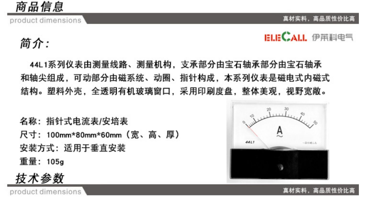 【定制】指针式交流电流表安培表 44L1-A 机械表头 10mA~50A仪器