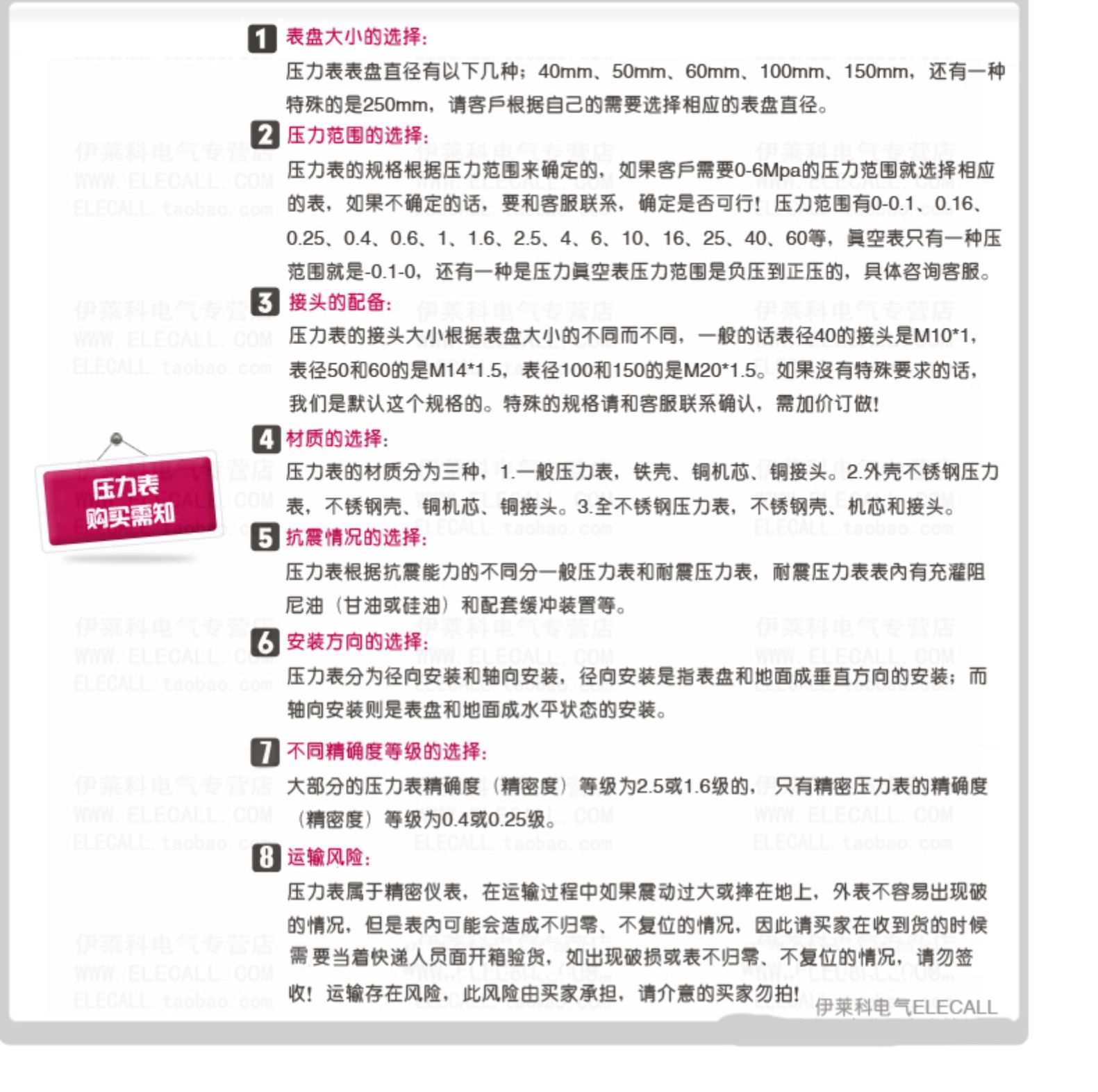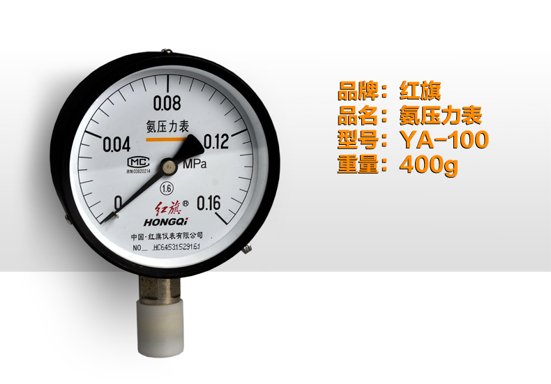 红旗氨用压力表 YA-100 径向 多规格 氨气压力表 指针表 需定制