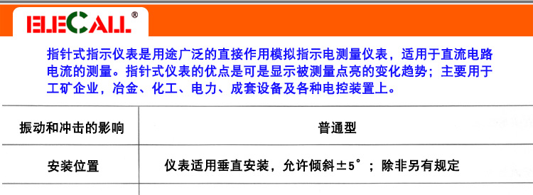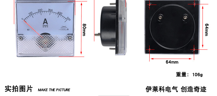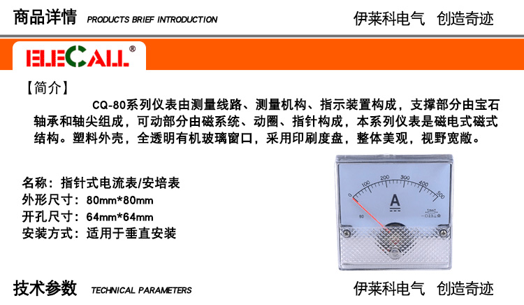 ELECALL伊莱科直流电流表安培表指针式电流表CQ-80机械表头需定制